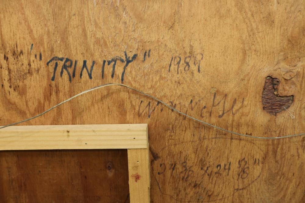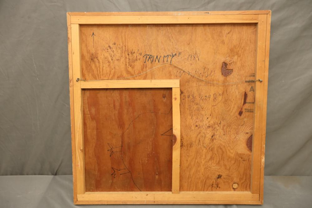 Mixed Media Oil on Wood Framed. Signed "William McGee". Titled, dated and signed on back "Trinity 1989 William McGee" 24"x24". Pickup Only.