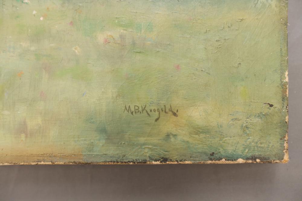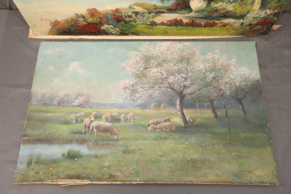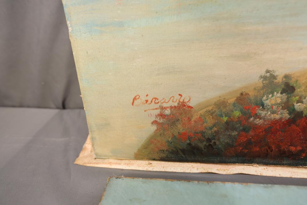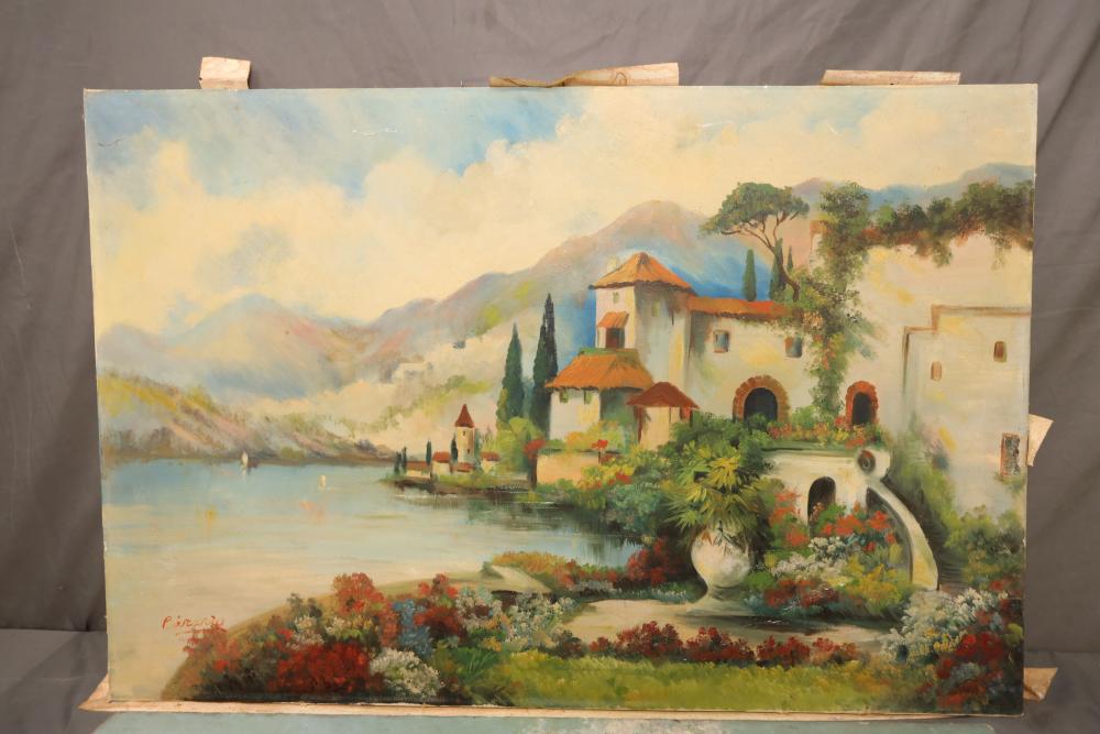 Two landscape oil paintings. Signed in lower left on the first one and signed lower right on the second one. Largest one being 36"x24". Pickup only.