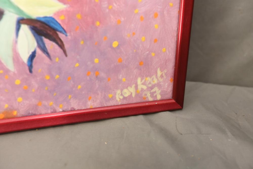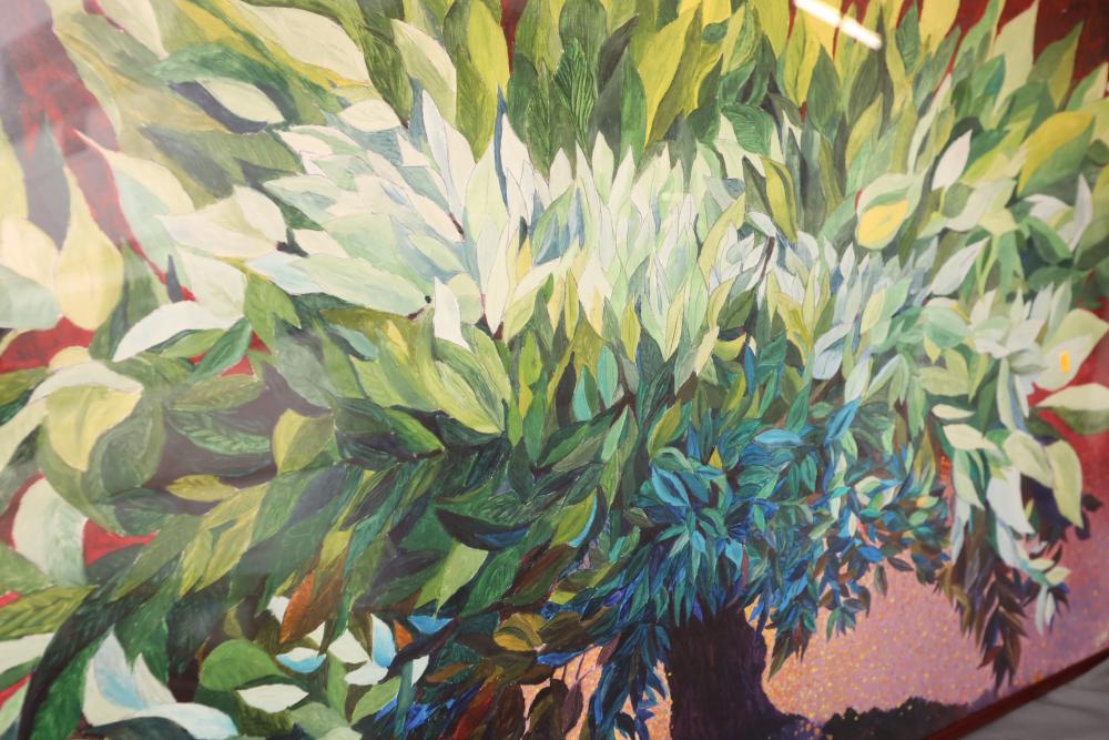 Items includes artwork: Oil on framed canvas, abstract art. Title on back "Night Cometh"; Oil on canvas, abstract art. Title on back "Far Edge". Signature on front appears to read "Syd Weinstein"; Oil on Canvas, abstract herd of horses. Signed in middle of painting. Written on back "Les Affectueux - II 1998"; Oil on canvas framed. Aquatic ship scene; Color etching and aquatint on paper. Titled "Sound of a Forest Brook" Signed lower right " Karl Schrag 86' " numbered 7/40; Print on paper framed. Signed "Amen" in lower right corner. Lower left reads "AP The City" ; Mixed Media Collage on paper. Signed lower left corner "William McGee 1989" Title "By the Sea"; Two framed Egyptian prints on Papyrus. "Nefertari and Hathor" and "Ramsess II Moving into Battle" and much more! Items are located in Pleasant Valley, NY.