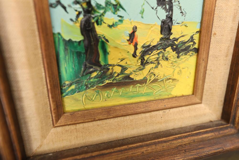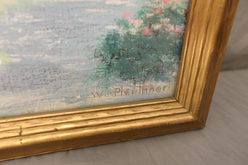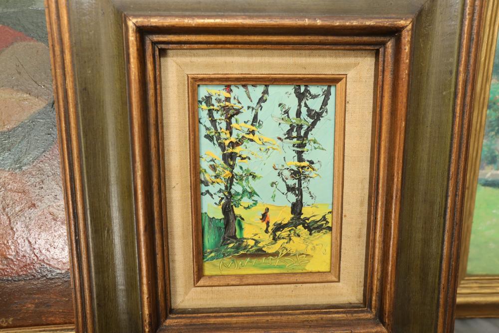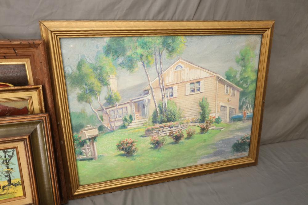 Items includes artwork: Oil on framed canvas, abstract art. Title on back "Night Cometh"; Oil on canvas, abstract art. Title on back "Far Edge". Signature on front appears to read "Syd Weinstein"; Oil on Canvas, abstract herd of horses. Signed in middle of painting. Written on back "Les Affectueux - II 1998"; Oil on canvas framed. Aquatic ship scene; Color etching and aquatint on paper. Titled "Sound of a Forest Brook" Signed lower right " Karl Schrag 86' " numbered 7/40; Print on paper framed. Signed "Amen" in lower right corner. Lower left reads "AP The City" ; Mixed Media Collage on paper. Signed lower left corner "William McGee 1989" Title "By the Sea"; Two framed Egyptian prints on Papyrus. "Nefertari and Hathor" and "Ramsess II Moving into Battle" and much more! Items are located in Pleasant Valley, NY.