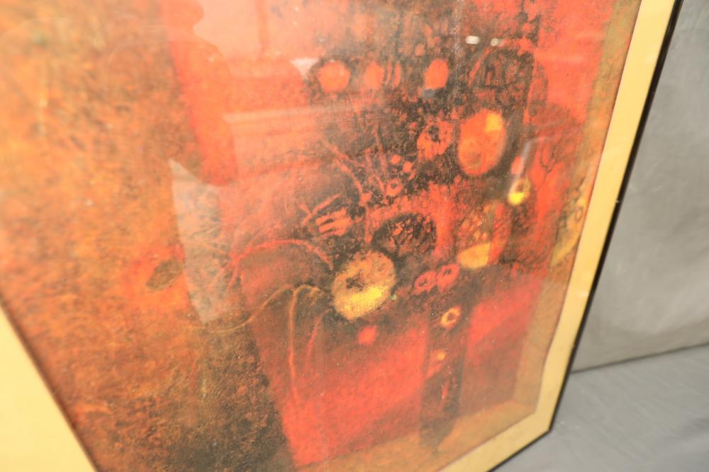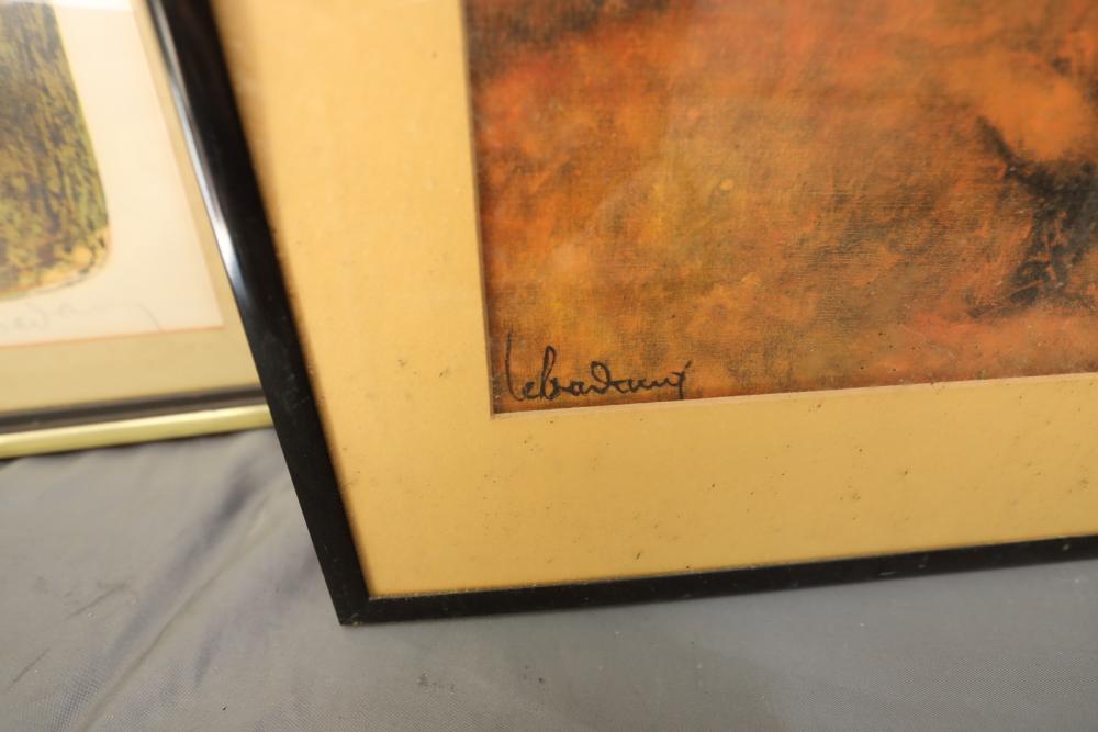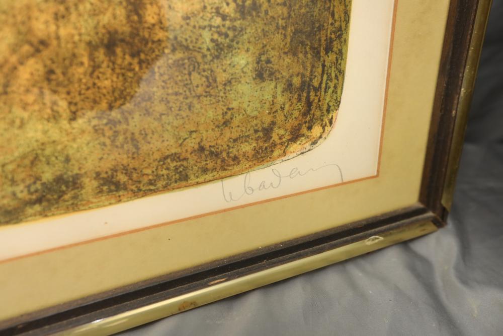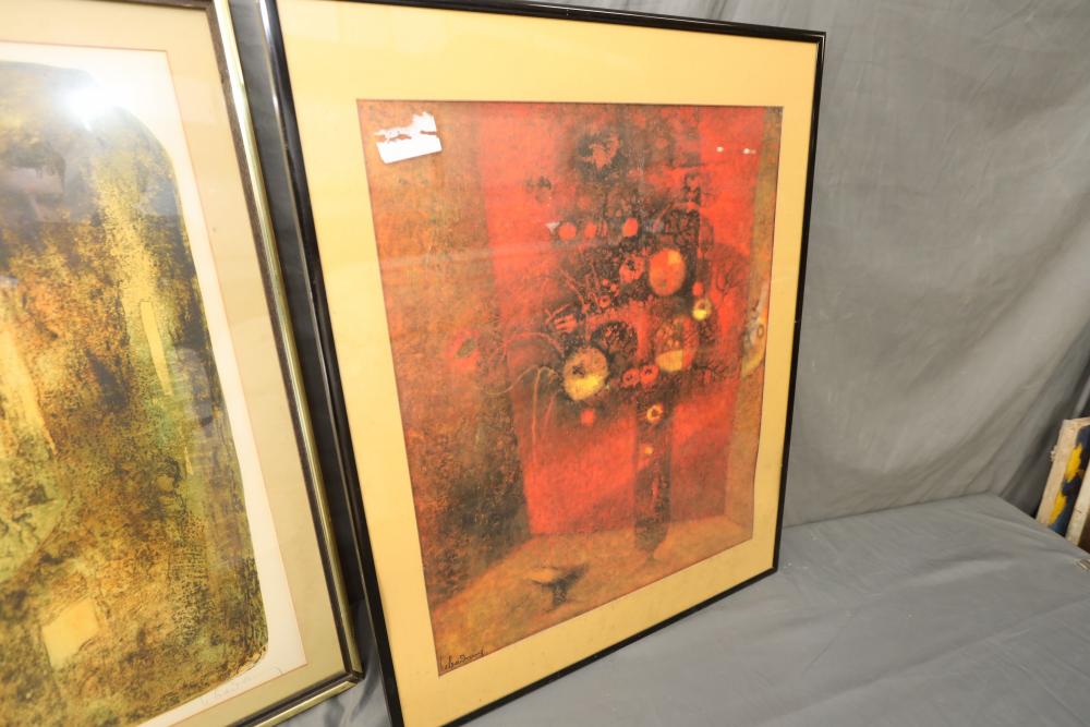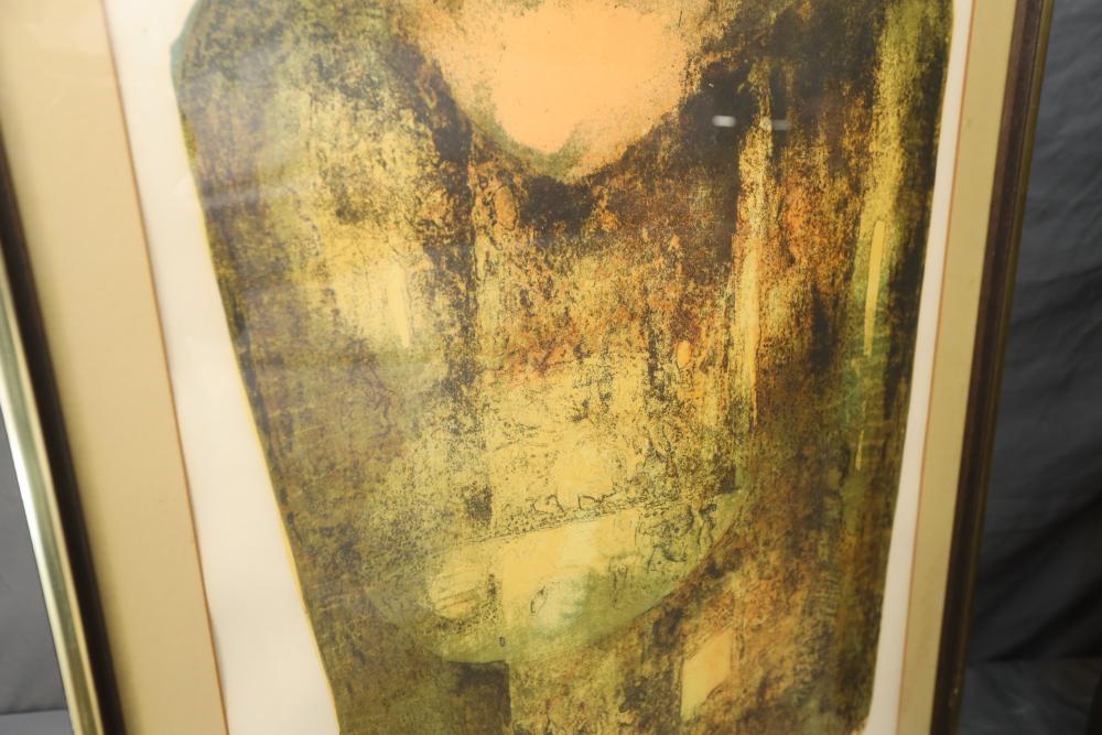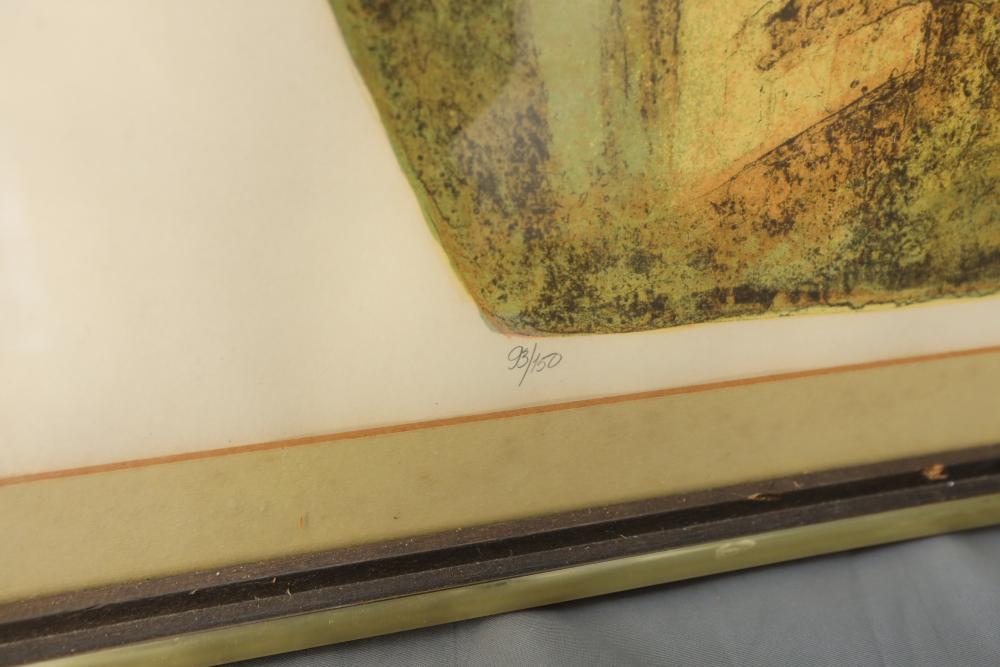 Items includes artwork: Oil on framed canvas, abstract art. Title on back "Night Cometh"; Oil on canvas, abstract art. Title on back "Far Edge". Signature on front appears to read "Syd Weinstein"; Oil on Canvas, abstract herd of horses. Signed in middle of painting. Written on back "Les Affectueux - II 1998"; Oil on canvas framed. Aquatic ship scene; Color etching and aquatint on paper. Titled "Sound of a Forest Brook" Signed lower right " Karl Schrag 86' " numbered 7/40; Print on paper framed. Signed "Amen" in lower right corner. Lower left reads "AP The City" ; Mixed Media Collage on paper. Signed lower left corner "William McGee 1989" Title "By the Sea"; Two framed Egyptian prints on Papyrus. "Nefertari and Hathor" and "Ramsess II Moving into Battle" and much more! Items are located in Pleasant Valley, NY.