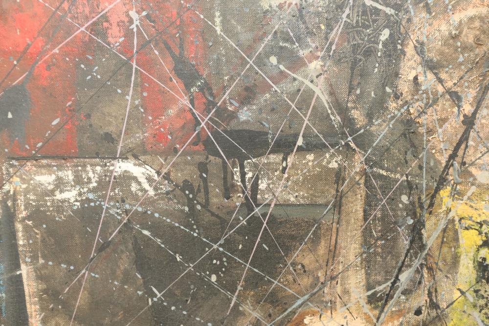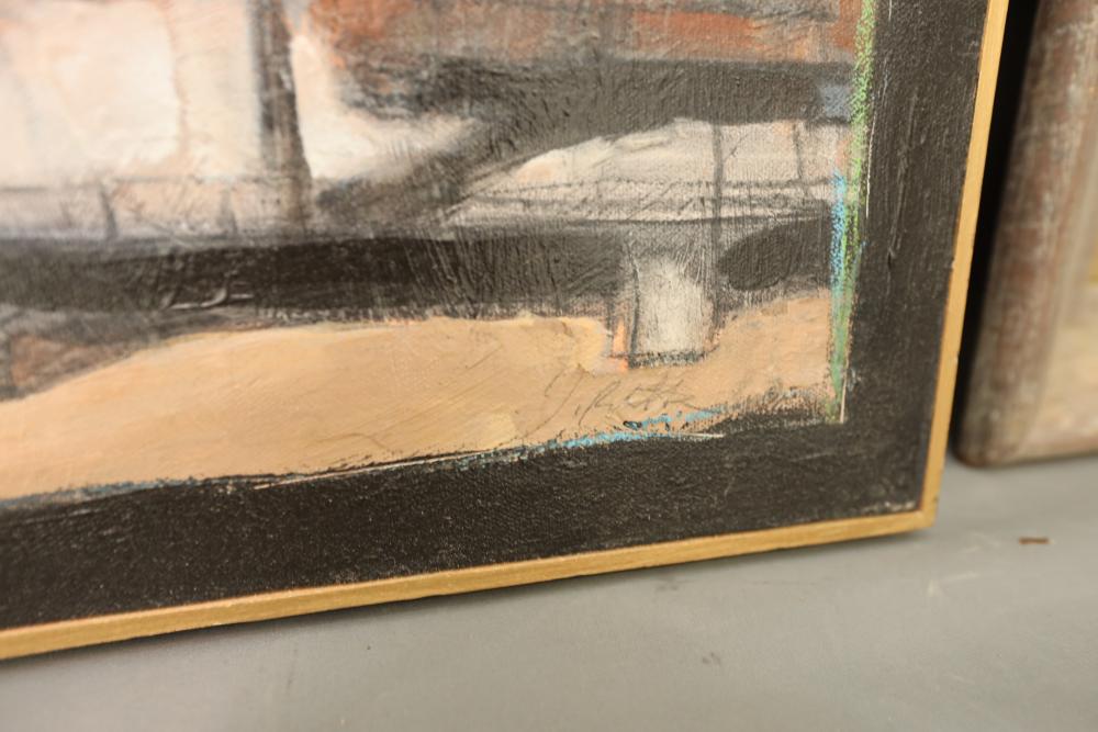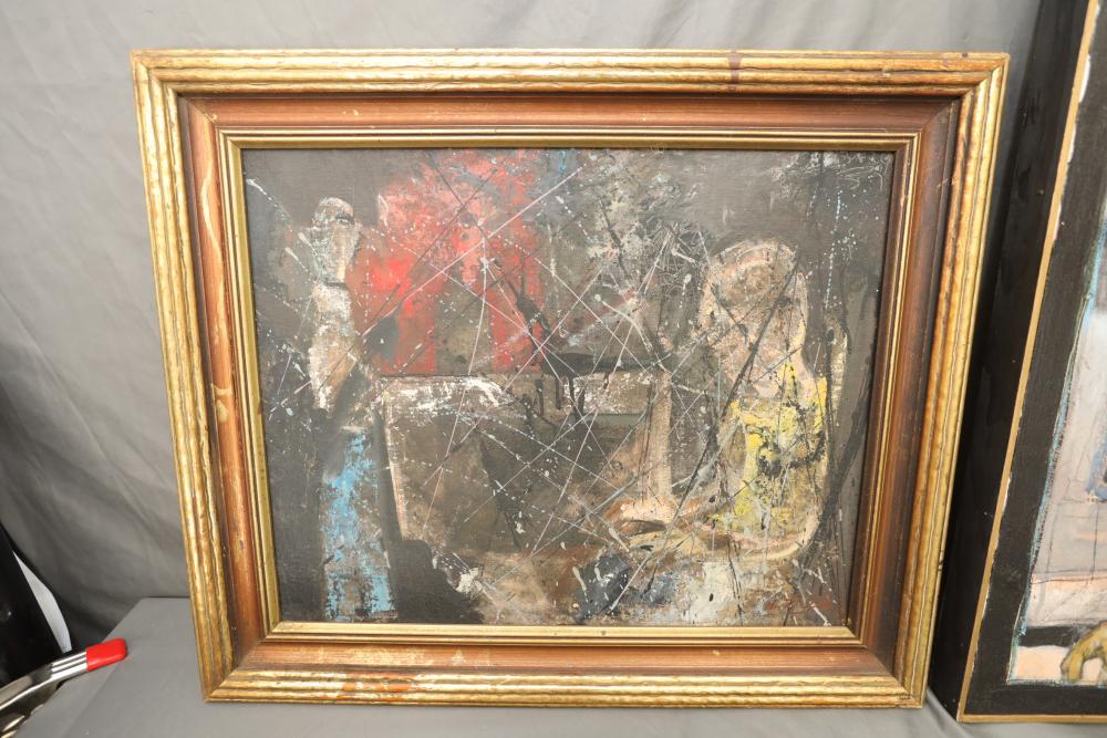 Three oil paintings on canvas framed. Including abstract and landscape. Largest being 24"x24". Pickup only.
