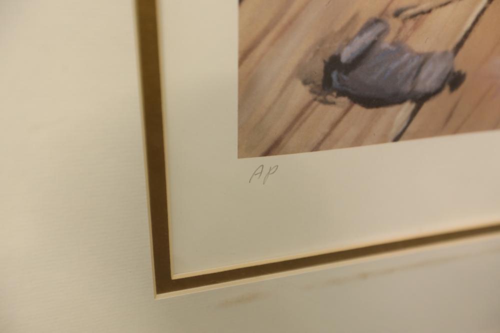 Framed Print. Title "Emmett's Self Portrait by Barry Leighton-Jones, signed in the lower right "Leighton - Jones". In lower left is "AP". 39"x32". Pickup Only.