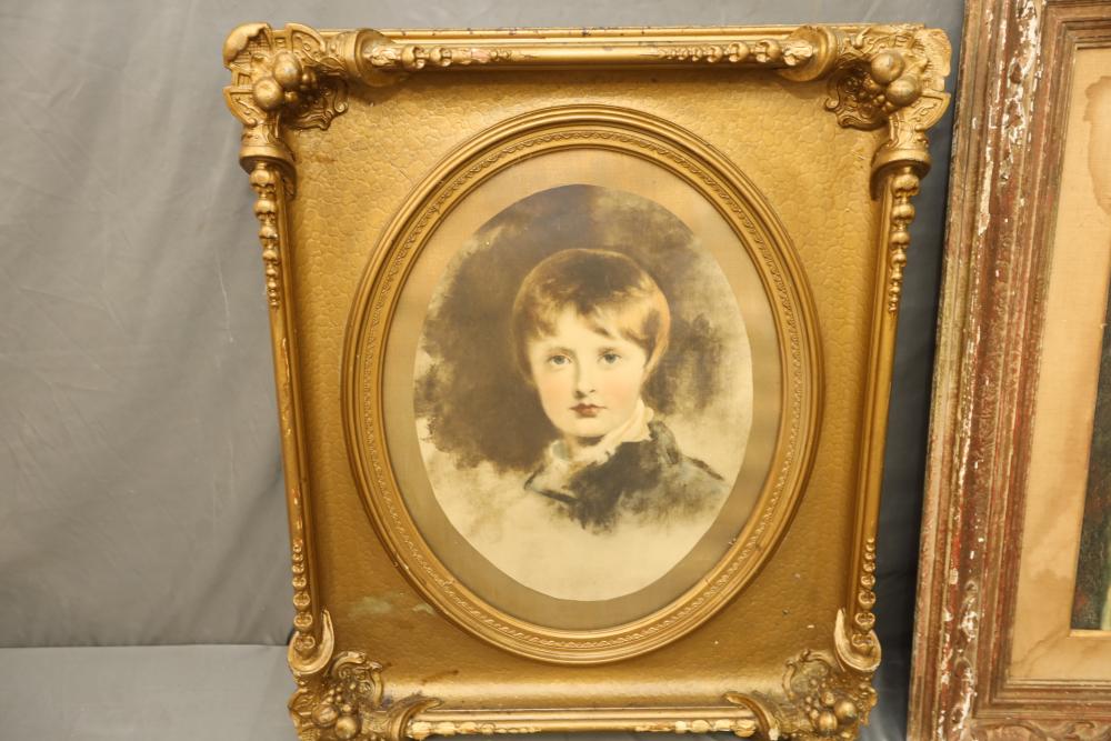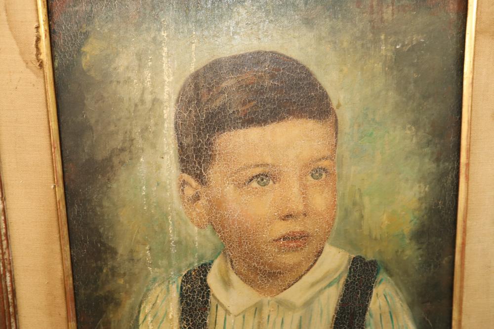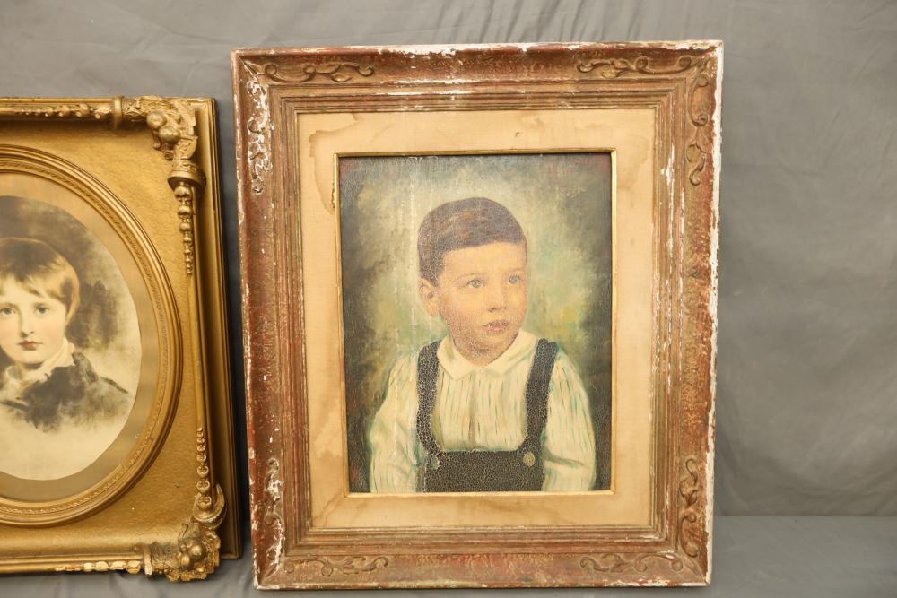 Two portraits of children framed on canvas and paper. Largest being 31"x26". Pickup only.