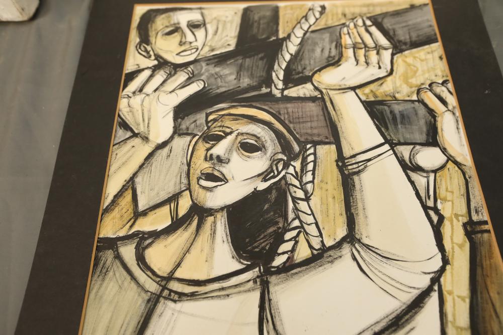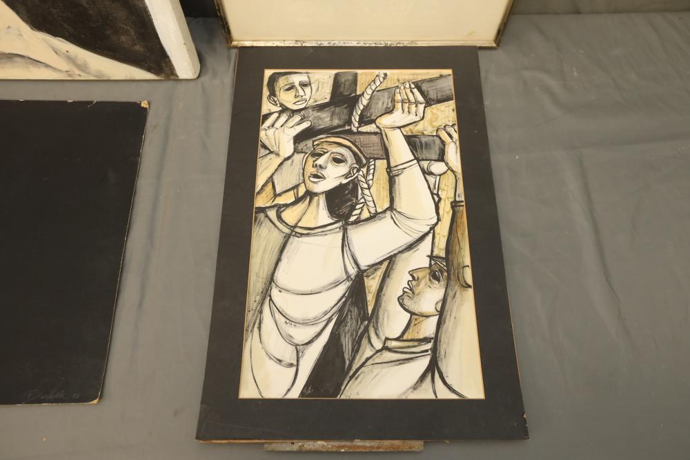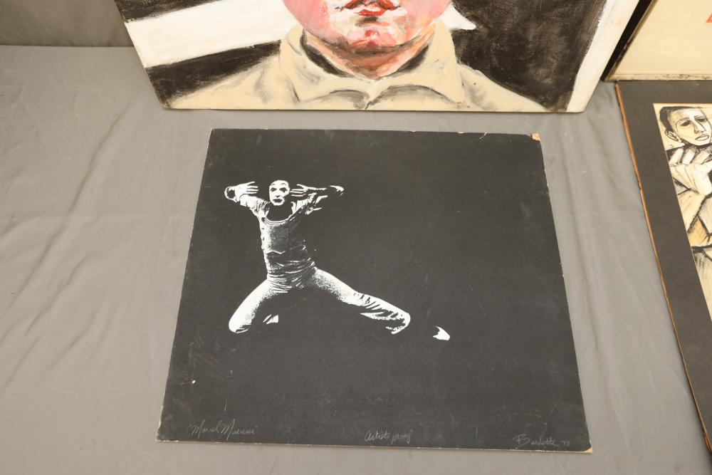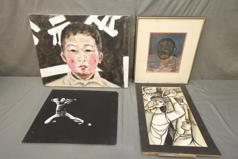 Four various works of art. Oil on canvas, drawings and print. Largest piece being 28"x22". Pickup only.