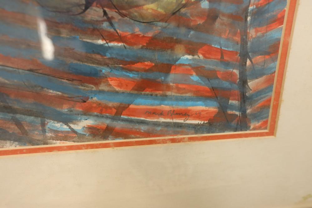 Items includes artwork: Oil on framed canvas, abstract art. Title on back "Night Cometh"; Oil on canvas, abstract art. Title on back "Far Edge". Signature on front appears to read "Syd Weinstein"; Oil on Canvas, abstract herd of horses. Signed in middle of painting. Written on back "Les Affectueux - II 1998"; Oil on canvas framed. Aquatic ship scene; Color etching and aquatint on paper. Titled "Sound of a Forest Brook" Signed lower right " Karl Schrag 86' " numbered 7/40; Print on paper framed. Signed "Amen" in lower right corner. Lower left reads "AP The City" ; Mixed Media Collage on paper. Signed lower left corner "William McGee 1989" Title "By the Sea"; Two framed Egyptian prints on Papyrus. "Nefertari and Hathor" and "Ramsess II Moving into Battle" and much more! Items are located in Pleasant Valley, NY.