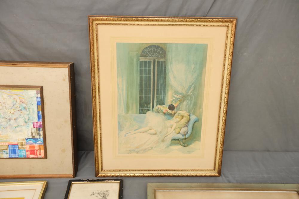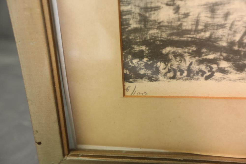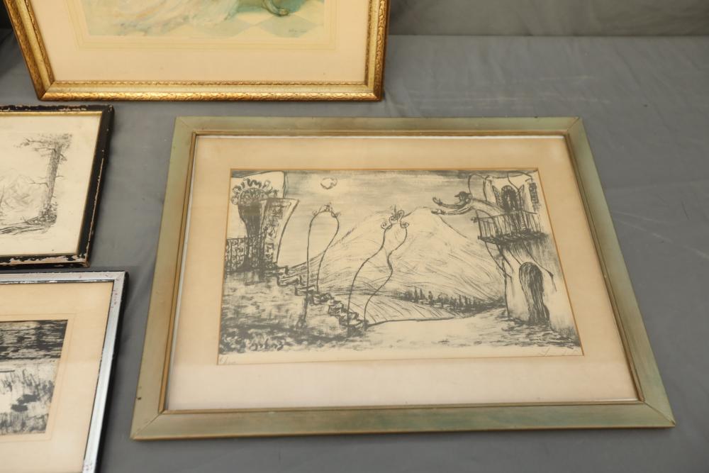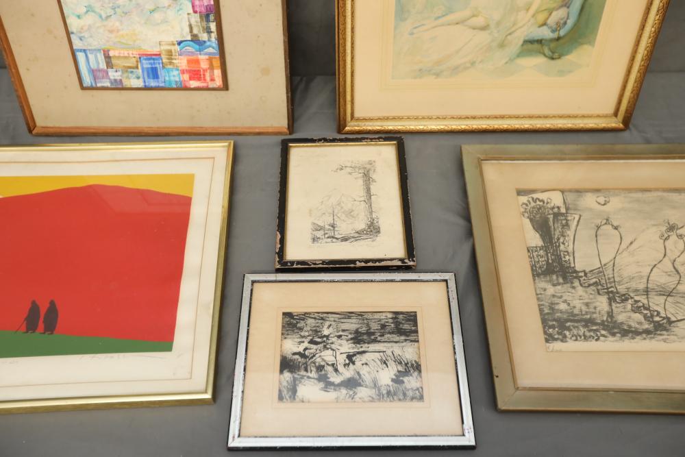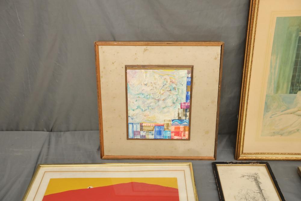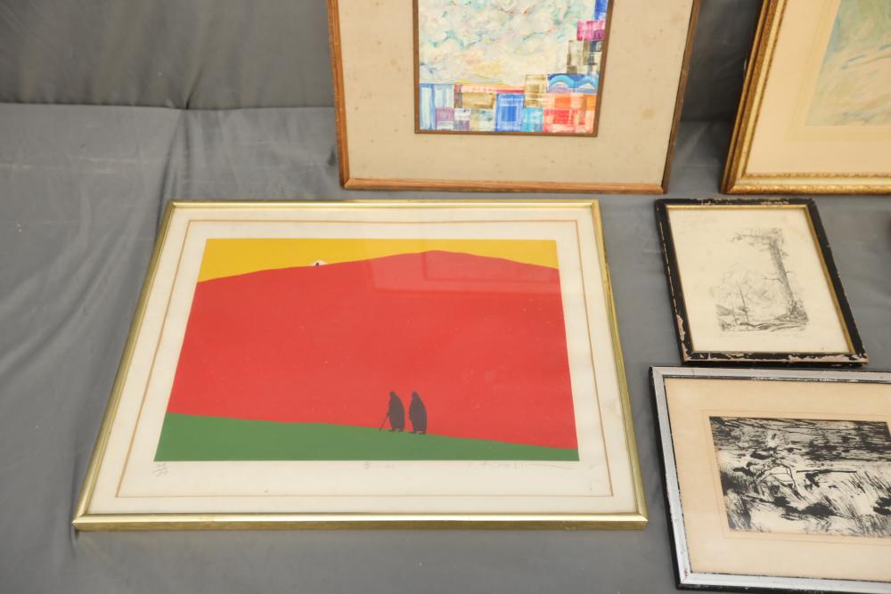Five various prints on paper framed and one canvas. Some are signed and numbered. Depicting abstract scenes of nature and a portrait. Pickup only.
