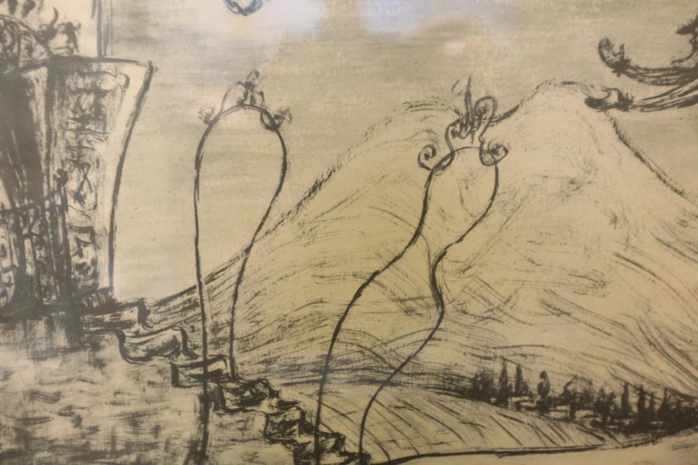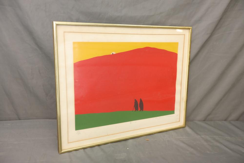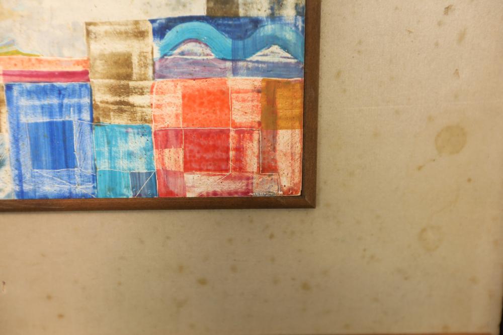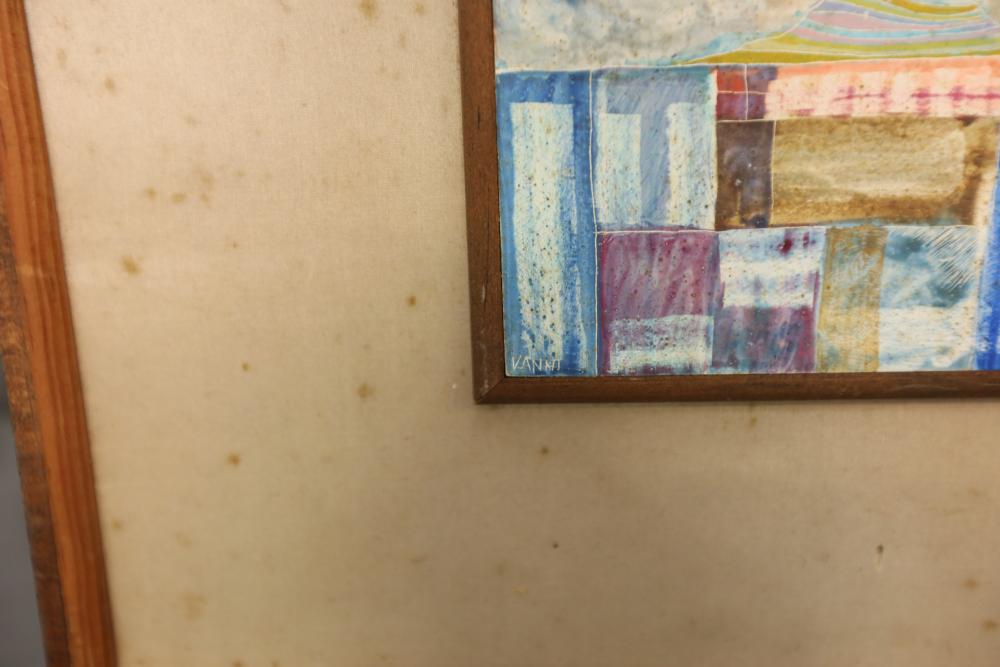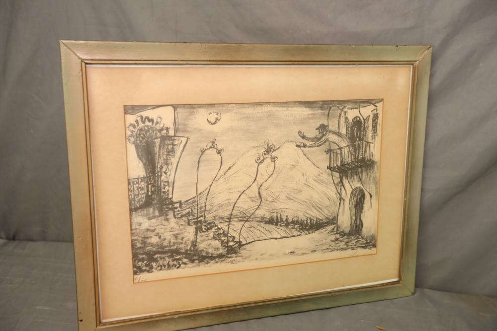 Items includes artwork: Oil on framed canvas, abstract art. Title on back "Night Cometh"; Oil on canvas, abstract art. Title on back "Far Edge". Signature on front appears to read "Syd Weinstein"; Oil on Canvas, abstract herd of horses. Signed in middle of painting. Written on back "Les Affectueux - II 1998"; Oil on canvas framed. Aquatic ship scene; Color etching and aquatint on paper. Titled "Sound of a Forest Brook" Signed lower right " Karl Schrag 86' " numbered 7/40; Print on paper framed. Signed "Amen" in lower right corner. Lower left reads "AP The City" ; Mixed Media Collage on paper. Signed lower left corner "William McGee 1989" Title "By the Sea"; Two framed Egyptian prints on Papyrus. "Nefertari and Hathor" and "Ramsess II Moving into Battle" and much more! Items are located in Pleasant Valley, NY.