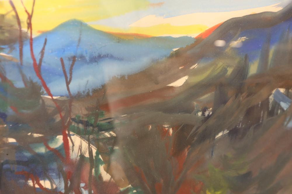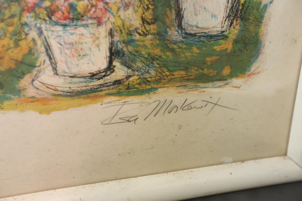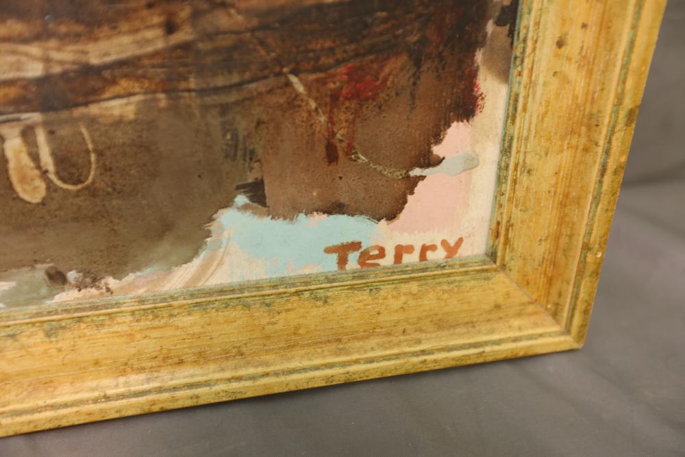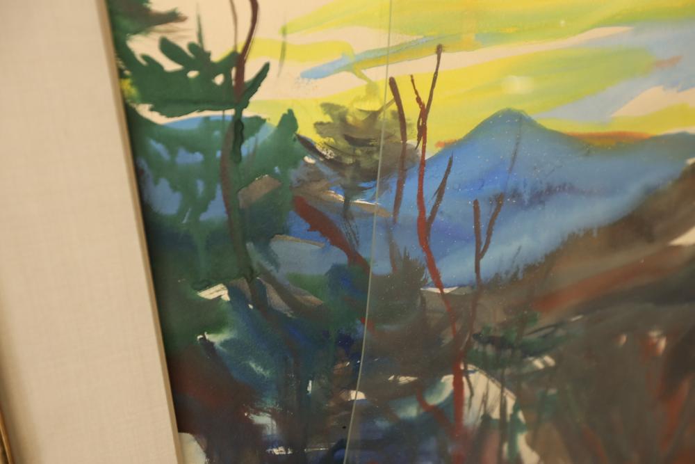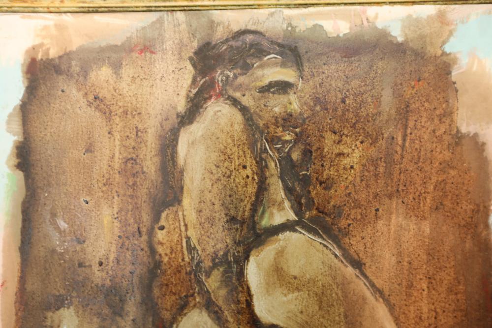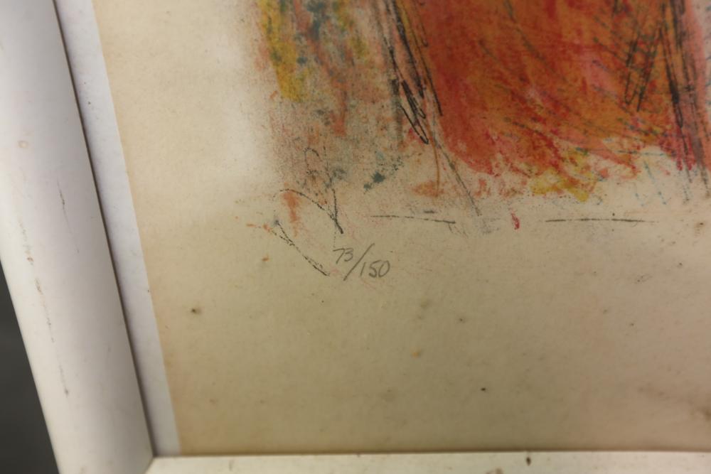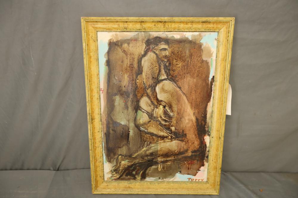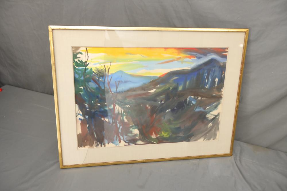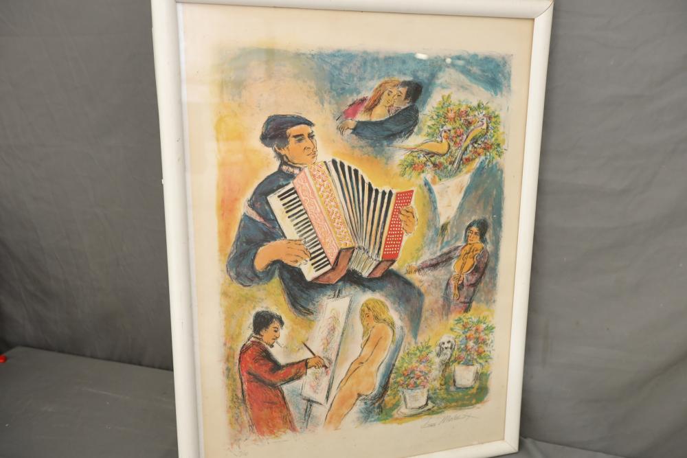 Items includes artwork: Oil on framed canvas, abstract art. Title on back "Night Cometh"; Oil on canvas, abstract art. Title on back "Far Edge". Signature on front appears to read "Syd Weinstein"; Oil on Canvas, abstract herd of horses. Signed in middle of painting. Written on back "Les Affectueux - II 1998"; Oil on canvas framed. Aquatic ship scene; Color etching and aquatint on paper. Titled "Sound of a Forest Brook" Signed lower right " Karl Schrag 86' " numbered 7/40; Print on paper framed. Signed "Amen" in lower right corner. Lower left reads "AP The City" ; Mixed Media Collage on paper. Signed lower left corner "William McGee 1989" Title "By the Sea"; Two framed Egyptian prints on Papyrus. "Nefertari and Hathor" and "Ramsess II Moving into Battle" and much more! Items are located in Pleasant Valley, NY.