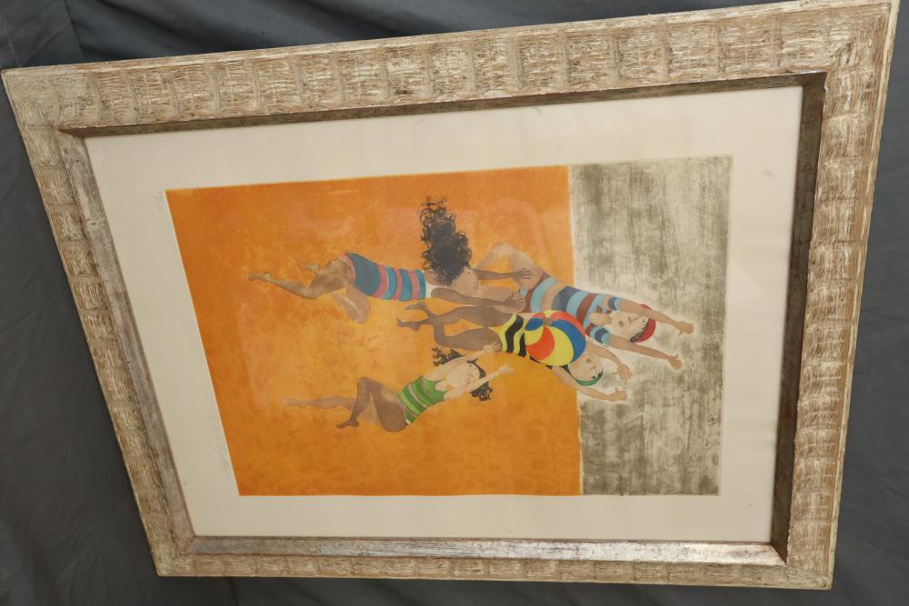 Lithograph on Paper, Signed lower right corner "G. Rodo Boulanger" and Titled "Beach Ball Game" numbered 79/150 36"x28". Pickup only.