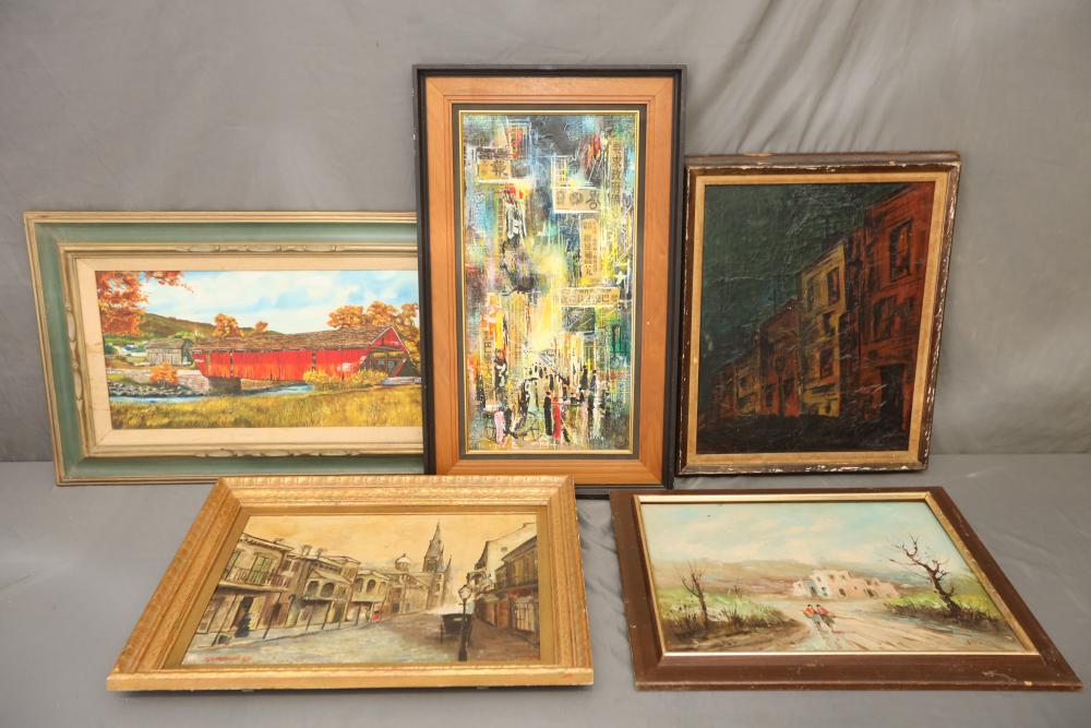 Five Oil paintings framed. A mix of city and landscapes. Pickup only.