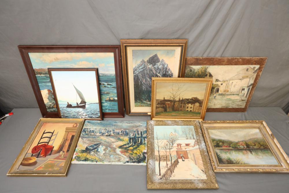 Nine Various Oil Paintings of landscapes and a still life. Pickup only.