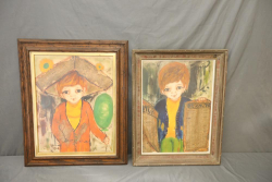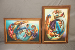 Two oil paintings on canvas. Signature appears to read "F. Charles" in lower right corner of each piece. Pickup only.