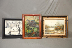 Three Various Oil Paintings of Nature scenes featuring animals. Pickup only.