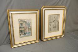 Two watercolors on paper framed. Signed and dated "JILL 11-59" . Pickup only.