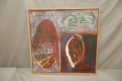 Items includes artwork: Oil on framed canvas, abstract art. Title on back "Night Cometh"; Oil on canvas, abstract art. Title on back "Far Edge". Signature on front appears to read "Syd Weinstein"; Oil on Canvas, abstract herd of horses. Signed in middle of painting. Written on back "Les Affectueux - II 1998"; Oil on canvas framed. Aquatic ship scene; Color etching and aquatint on paper. Titled "Sound of a Forest Brook" Signed lower right " Karl Schrag 86' " numbered 7/40; Print on paper framed. Signed "Amen" in lower right corner. Lower left reads "AP The City" ; Mixed Media Collage on paper. Signed lower left corner "William McGee 1989" Title "By the Sea"; Two framed Egyptian prints on Papyrus. "Nefertari and Hathor" and "Ramsess II Moving into Battle" and much more! Items are located in Pleasant Valley, NY.
