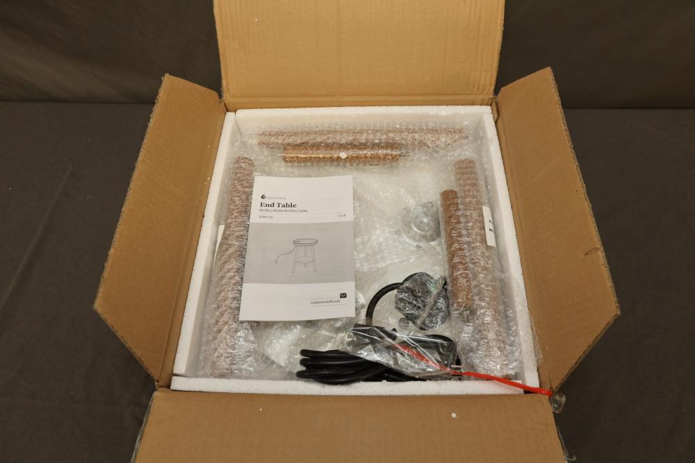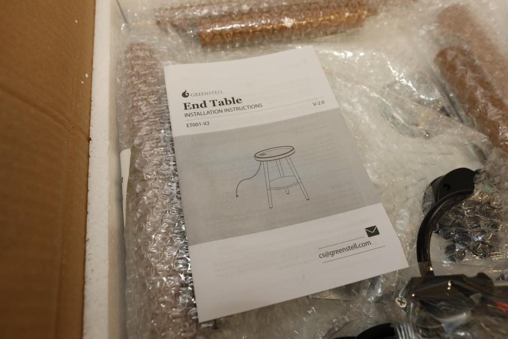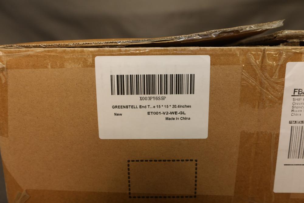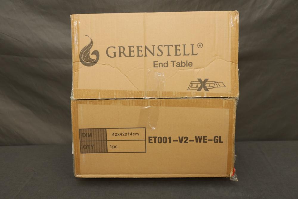 GreenSteel end table with built in outlets ET001-V2-WE-GL, 15"x15"x20.4". Appearing to be new in box. Pickup only.