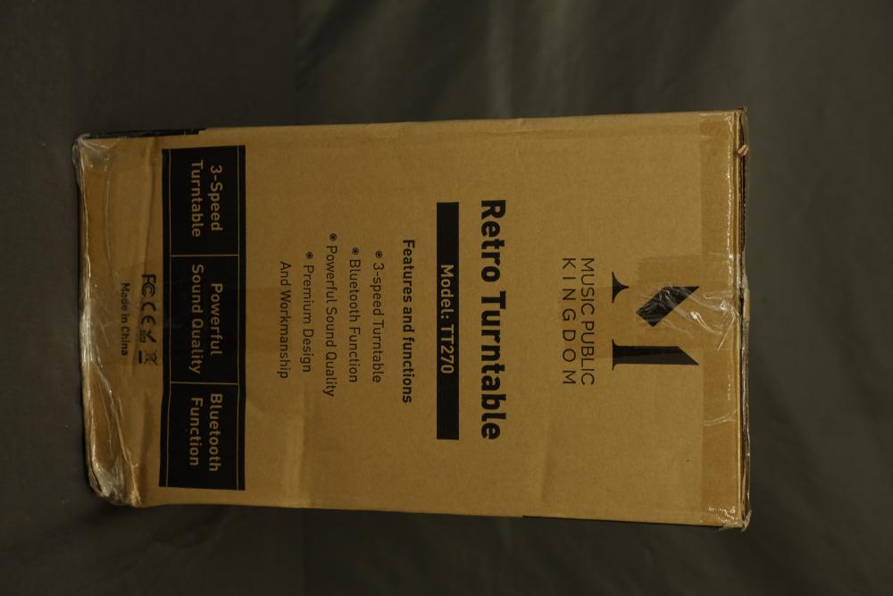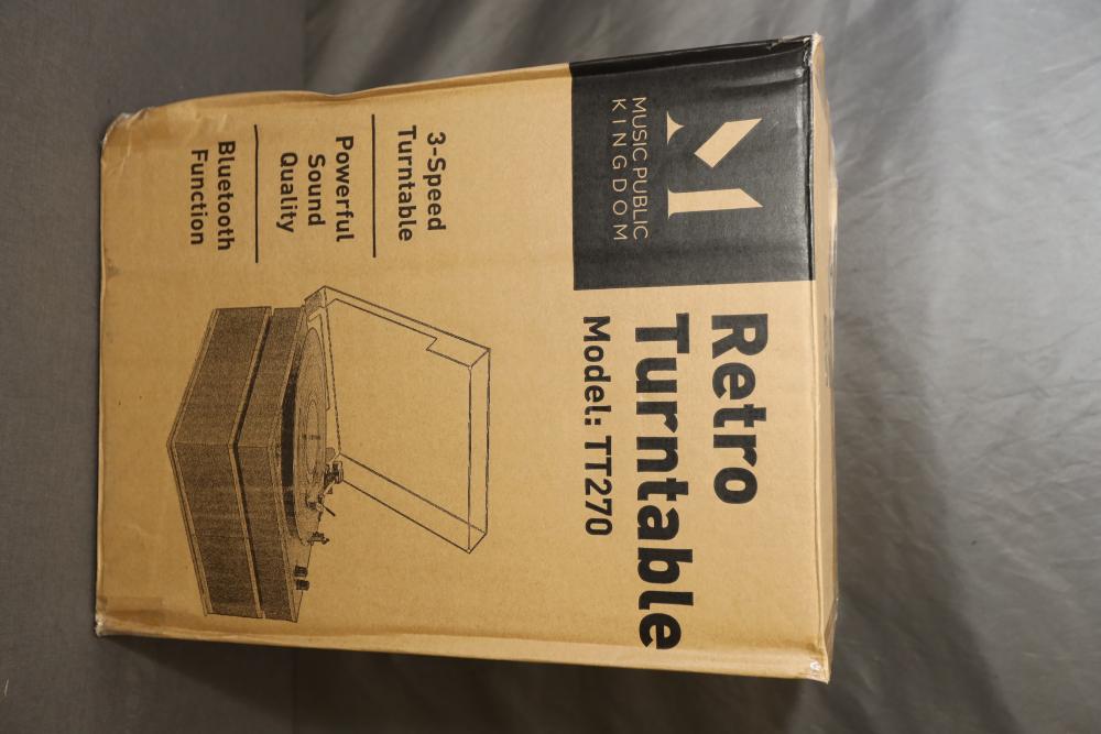 Music Public Kingdom Retro turntable 3-speed with Bluetooth function, Mo.# TT270. Appearing to be new in box. Pickup only.