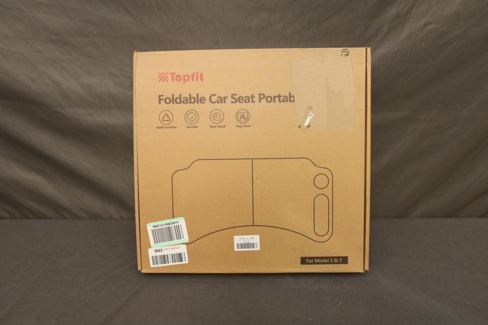 Topfit portable foldable car seat tray for Tesla model 3/Y. Appearing to be new in box.