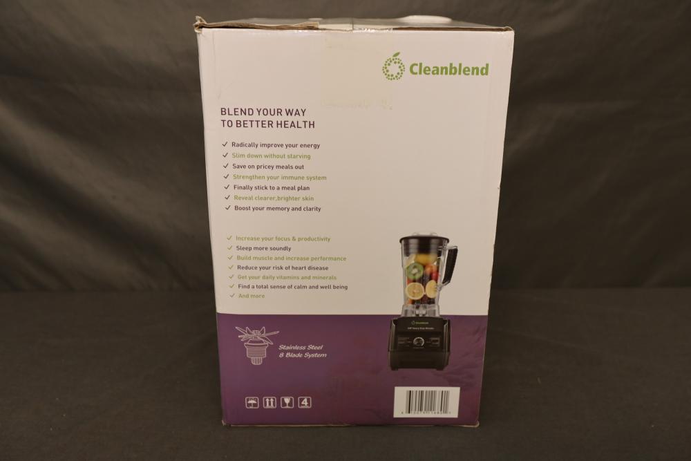Cleanblend high performance 8-blade 64oz blender with variable speed control and pulse function. Appearing to be new in box.