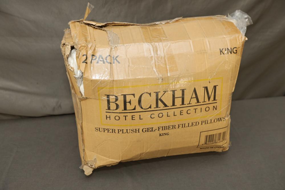 Beckham Hotel Collection two king size super plush gel fiber filled pillows. Appearing to be new in box.