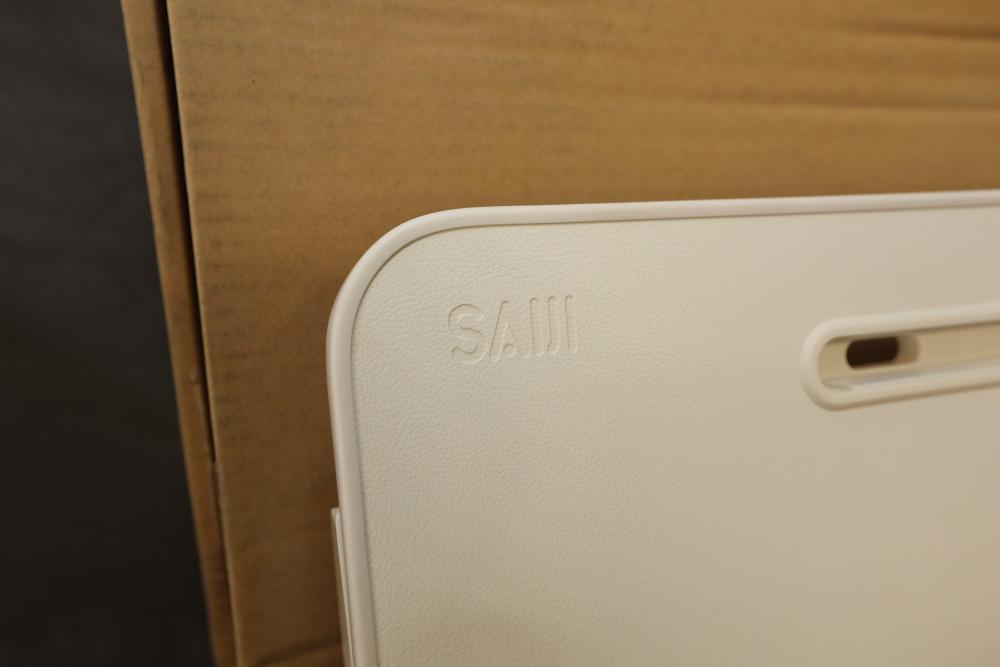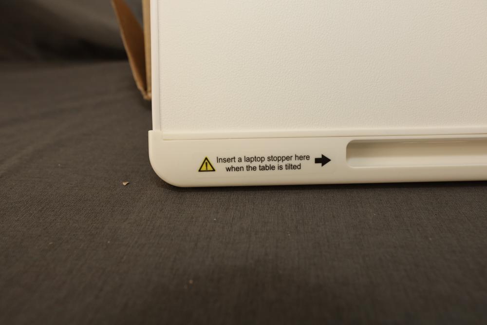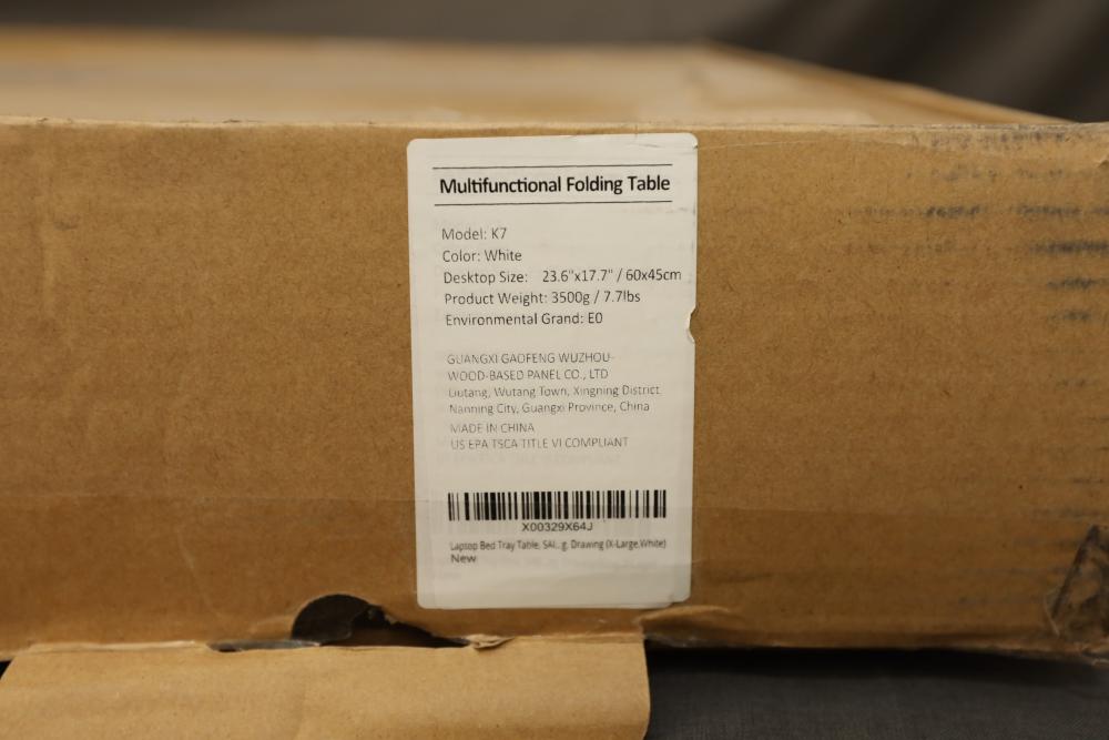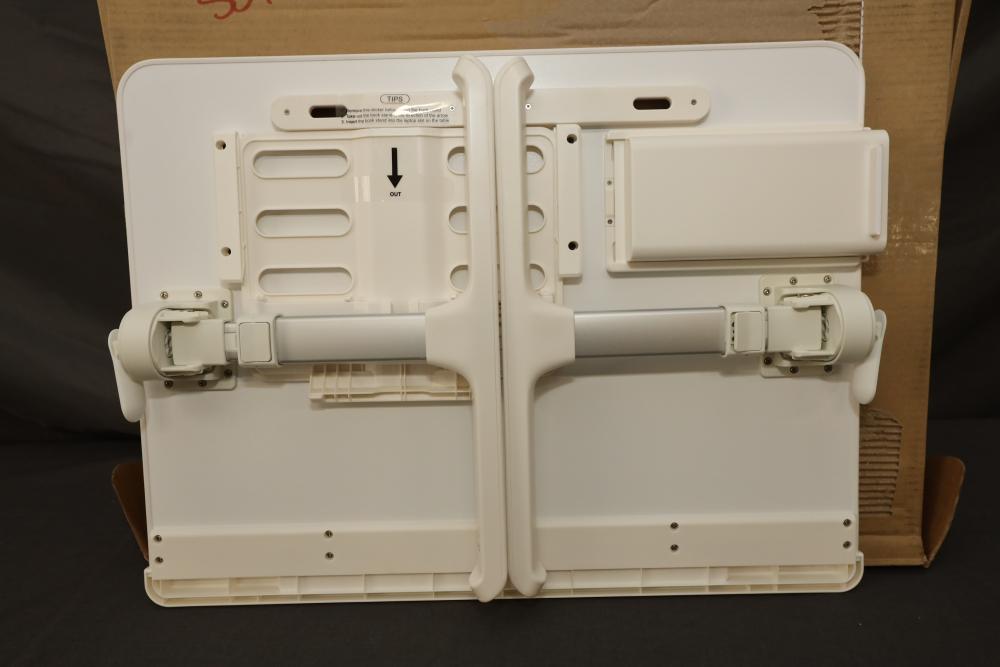 SAIJI white pvc multifunctional folding laptop table, Mo.#K7. Appearing to be new in box.