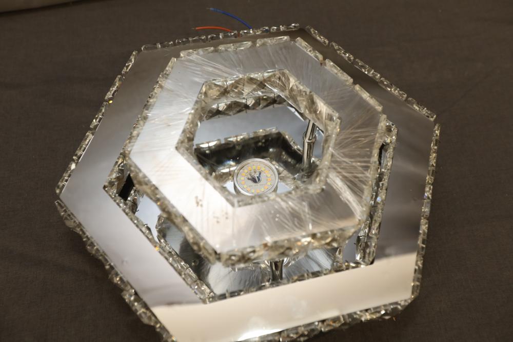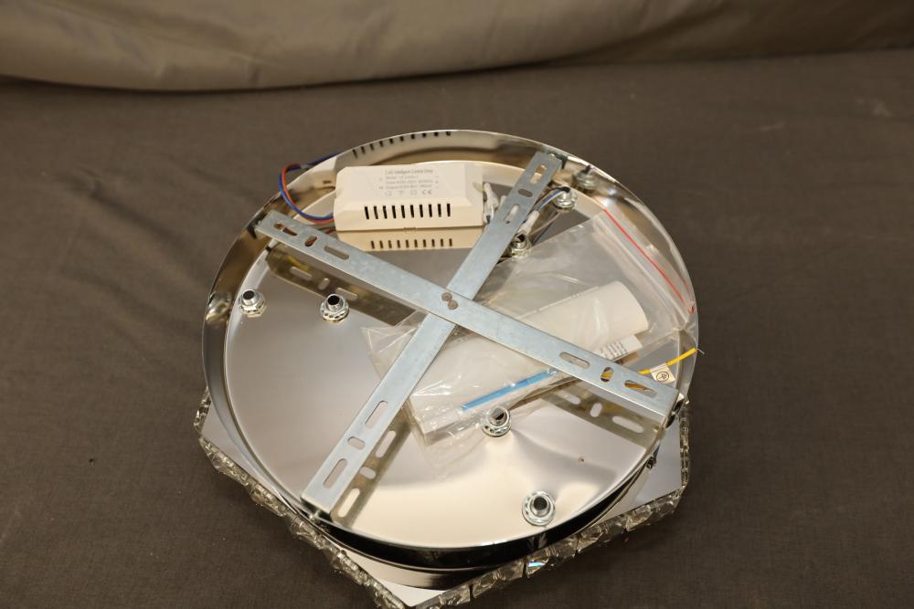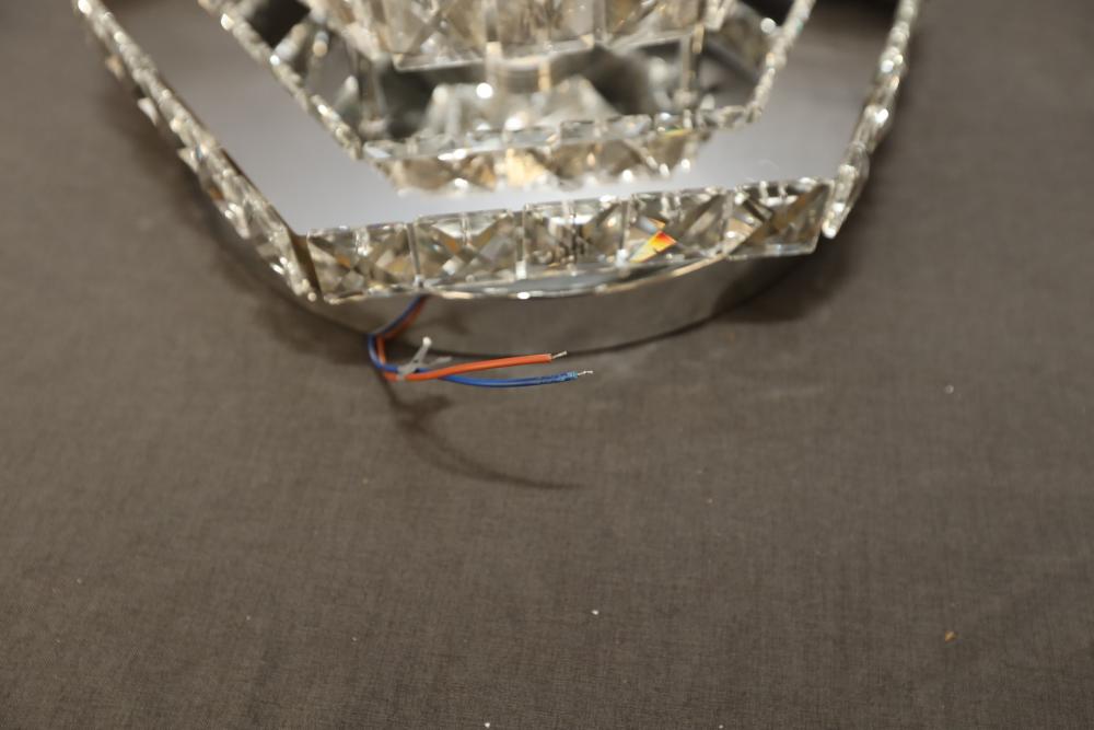 Crystal like electric chandelier light fixture. Appearing to be new in box. Pickup only.