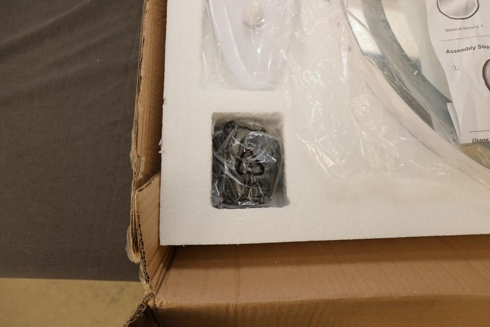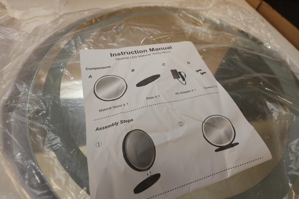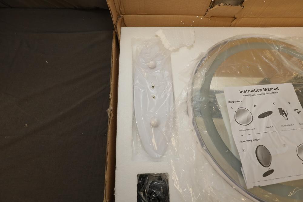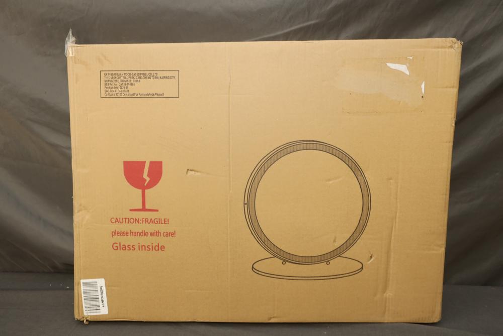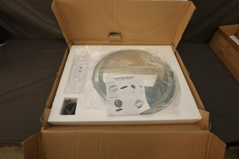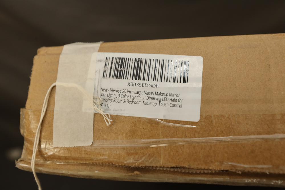 LVSOMT vierose 20" large touch control vanity makeup mirror with three color lighting and dimming LED halo for table top. Appearing to be new in box. Pickup only.