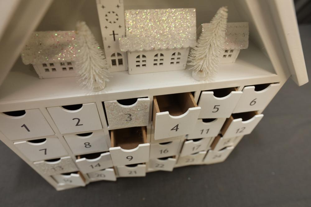 Lamplust White Christmas pre-lit LED wooden advent calendar IN# LC005415. Appearing to be new.