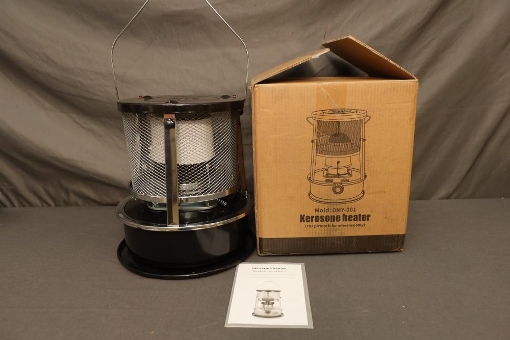 2-in-1 kerosene heater & stove non-electric indoor heater 9000BTU Mo.# DMY-001. Appearing to be new in box. Pickup only.