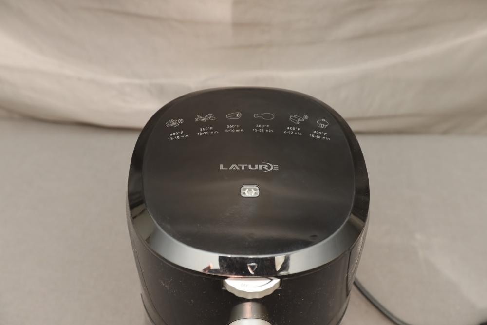 Lature 4.2qt electric air fryer with non-stick stainless steel inner tray Mo.# CR-5118. Appearing to be new. Pickup only.