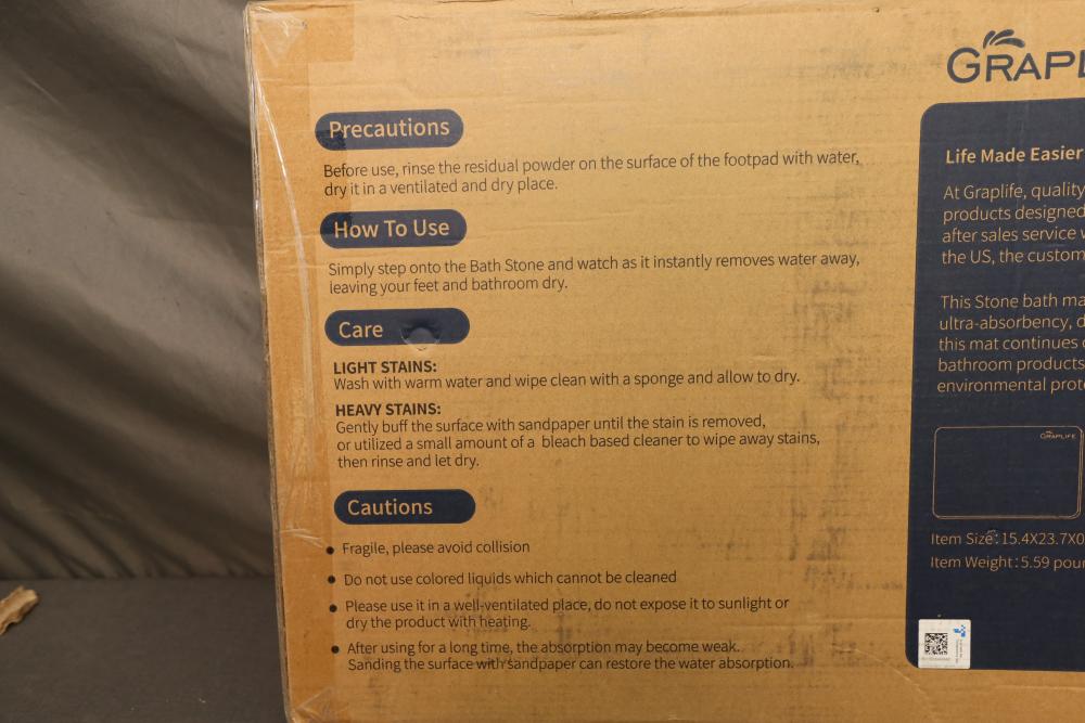 Graplife Stone Bath Mat made with diatomaceous earth 15.4"x23.7"x0.3". Appearing to be new in box.