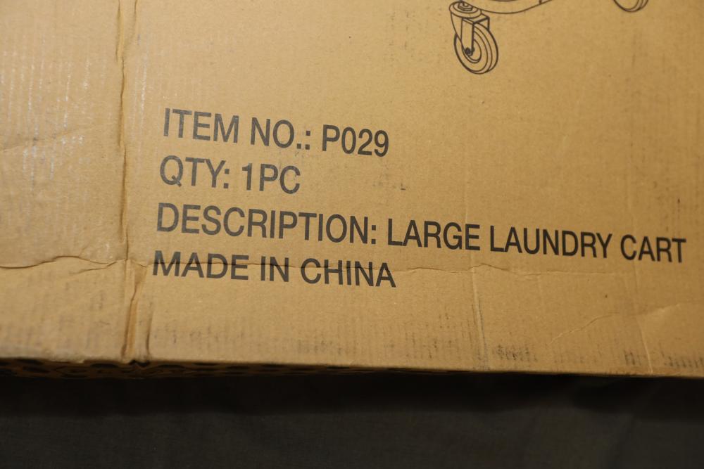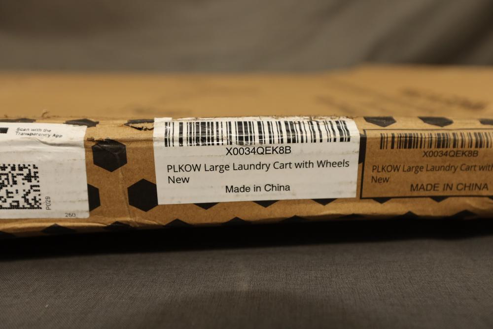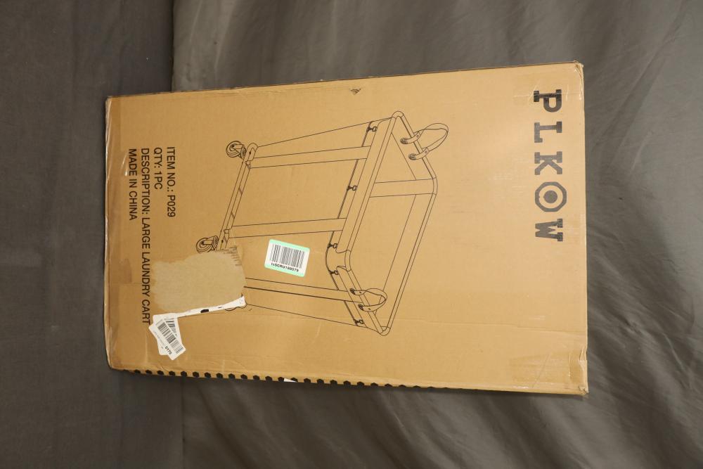 PLKOW single basket 320L laundry cart with wheels, steel frame, and water proof lining 32.3"Lx19.7"Wx30.7"H Mo.# P029. Appearing to be new in box. Pickup only.