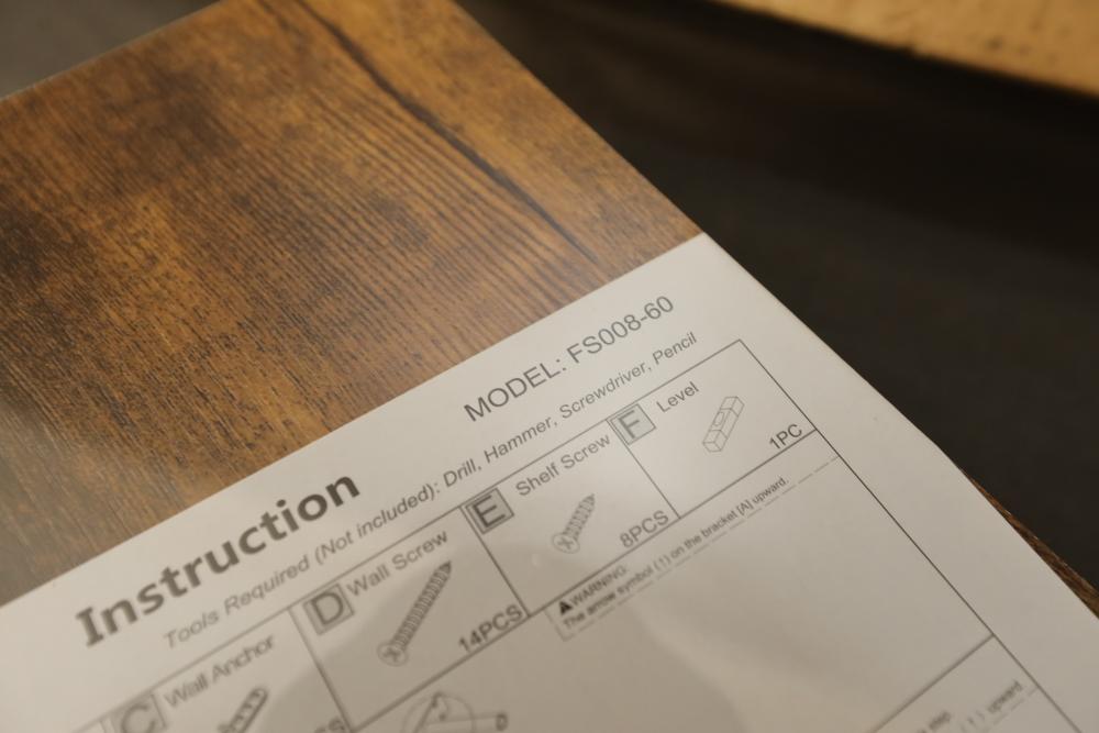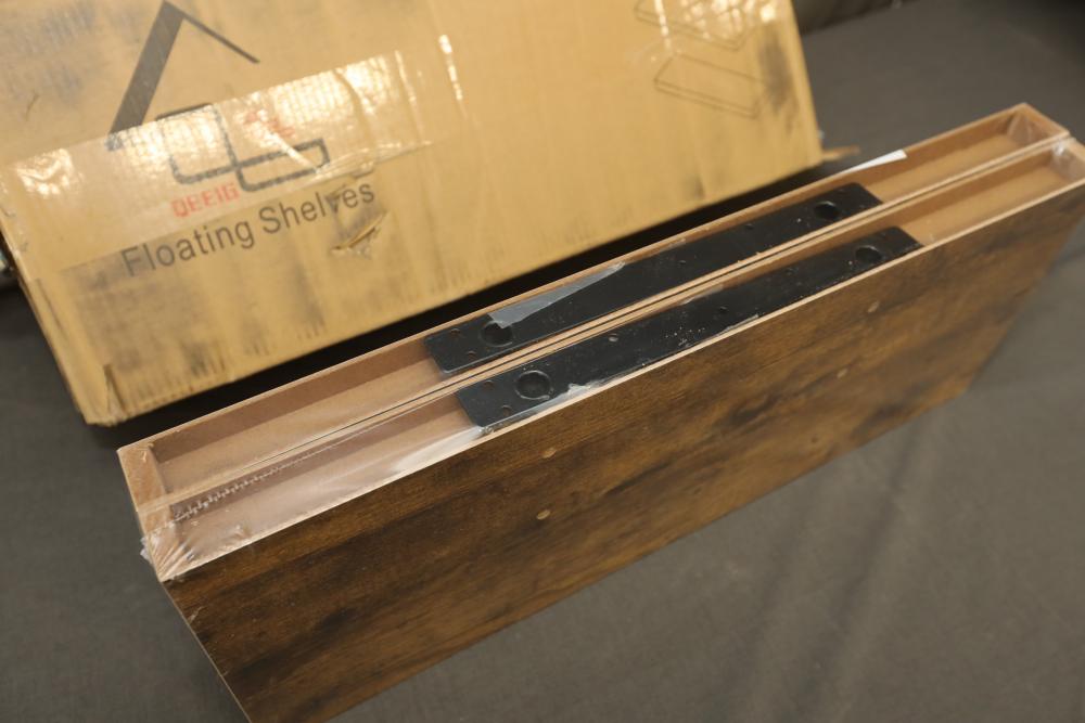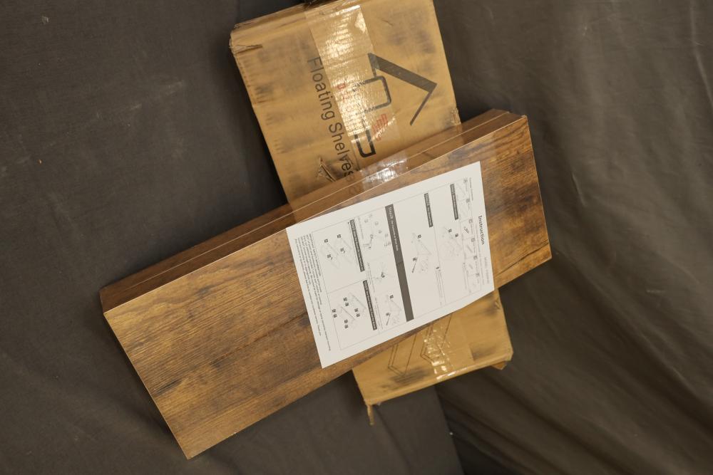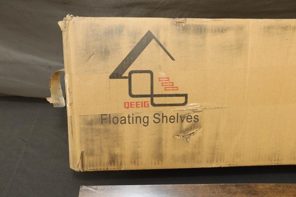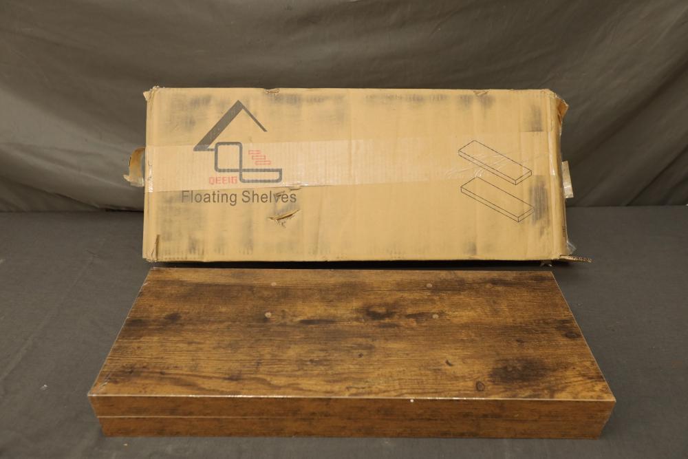 QEEIG brown bathroom floating shelves IN# FS008-60-023BN. Appearing to be new in box.