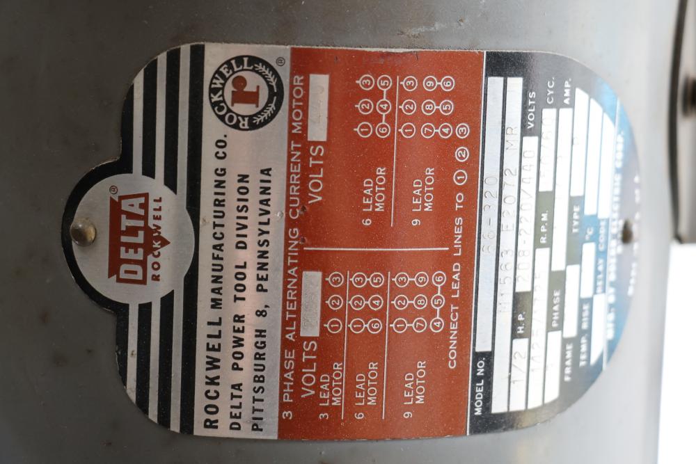 Delta Rockwell floor drill press with model 66-320 220V electric motor. Seller reports in working condition.