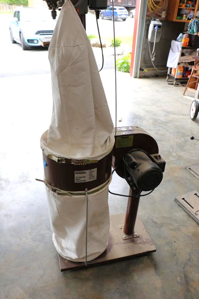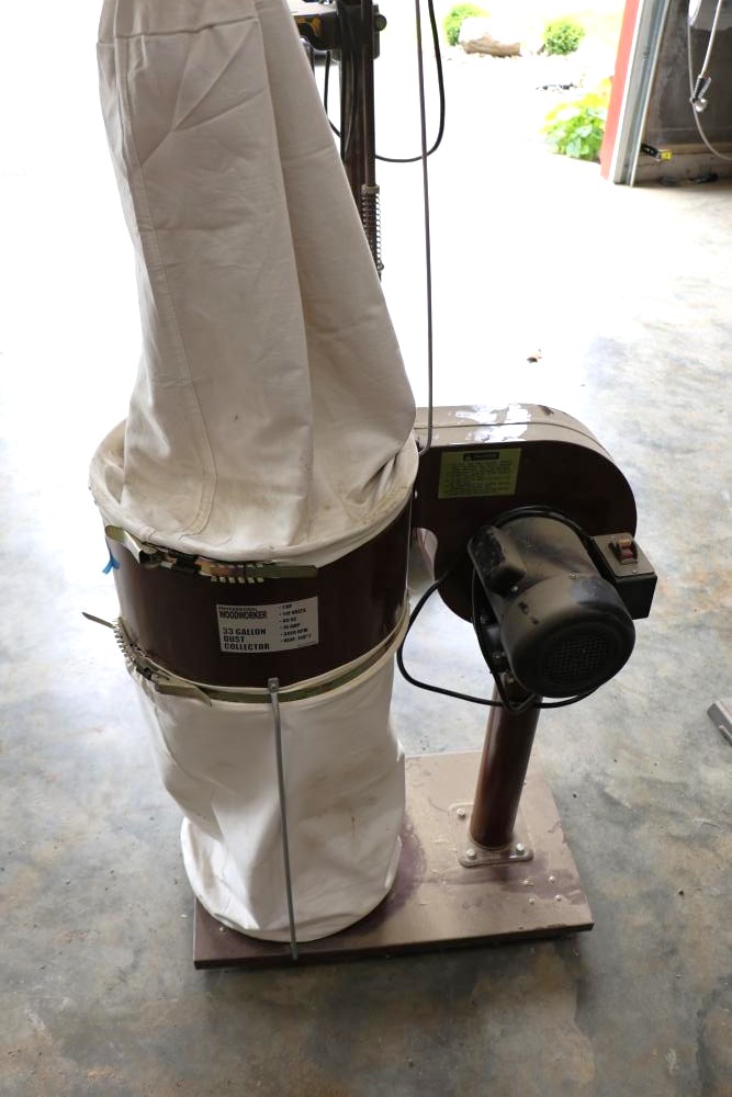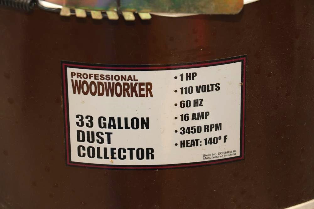 Professional woodworker 33 gal dust collector Stock No. DC33/03126 with a 1 HP 110v electric motor. Seller reports in working condition.