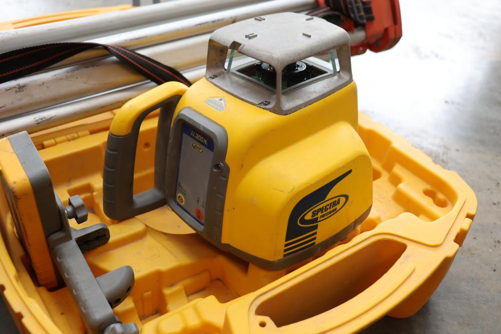 Trimble Spectra precision laser lever model LL300N with Spectra HL450 laser receiver, CST Berger tripod and collapsible measuring stick.