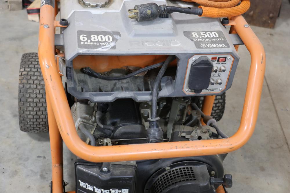 Ridgid zero gravity 6800 Watt gas powered generator with Yamaha MZ360 motor. 8500 starting watt and 6800 running watts, also includes Ridgid Gensmart load indicator. Seller reports worked when last used, has compression.