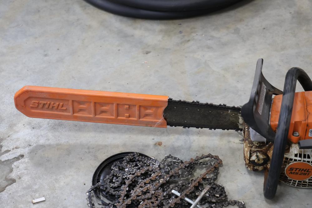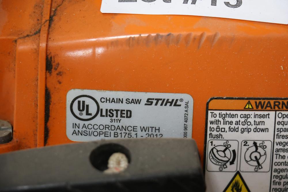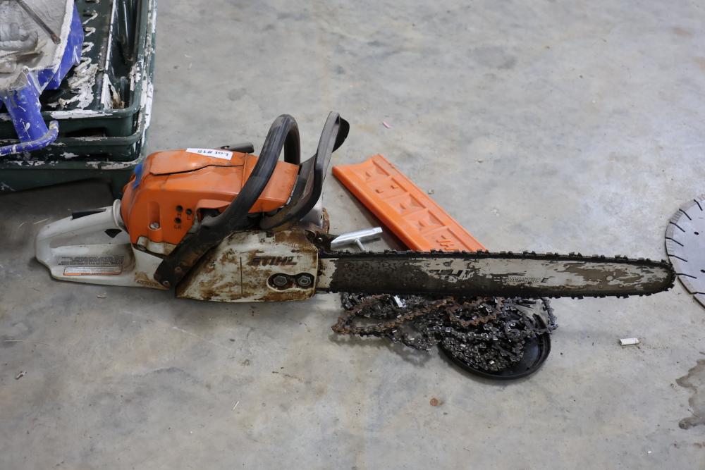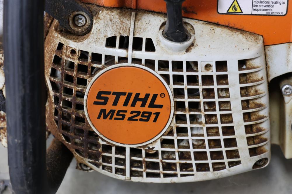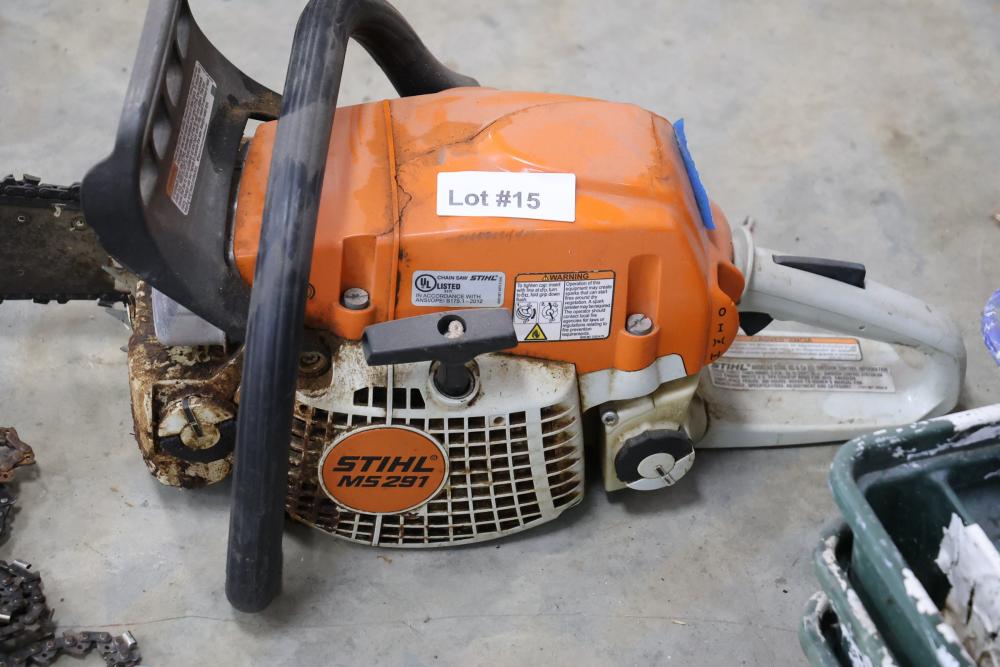 Stihl MS 291 chain saw with 56cc engine and additional chains. Seller reports worked when last used, has compression.