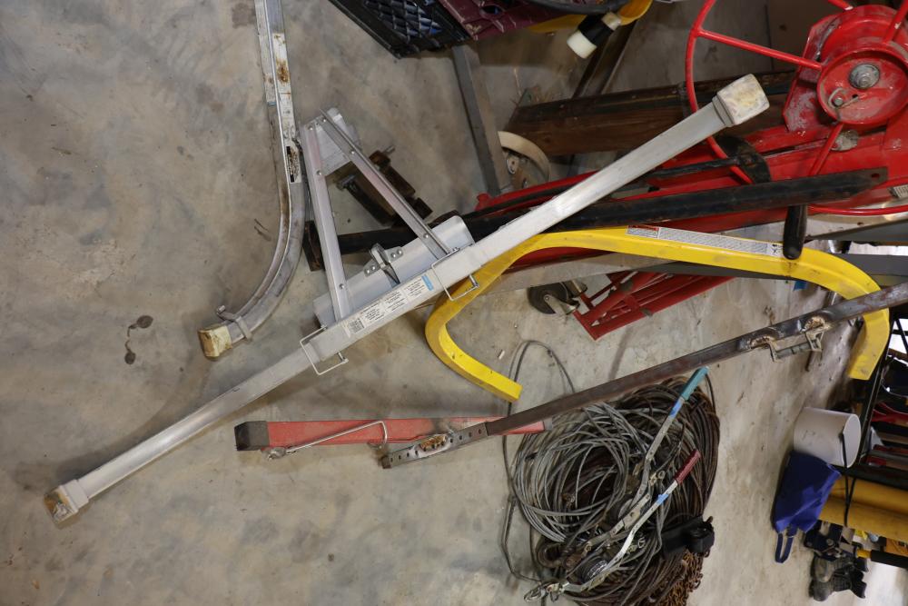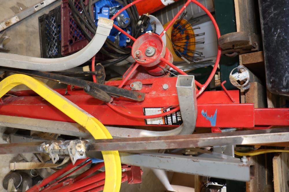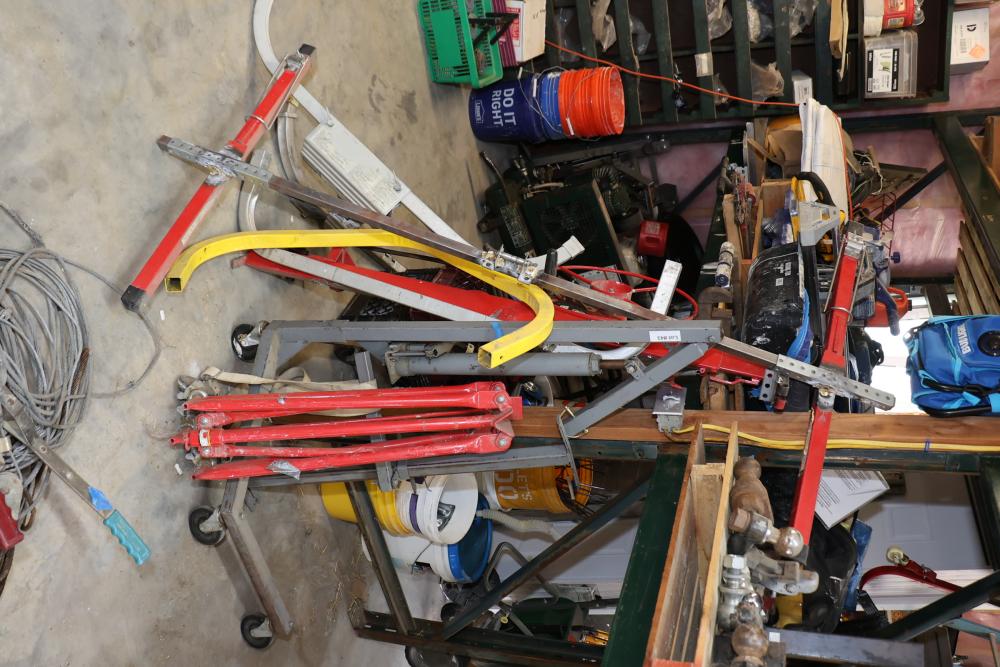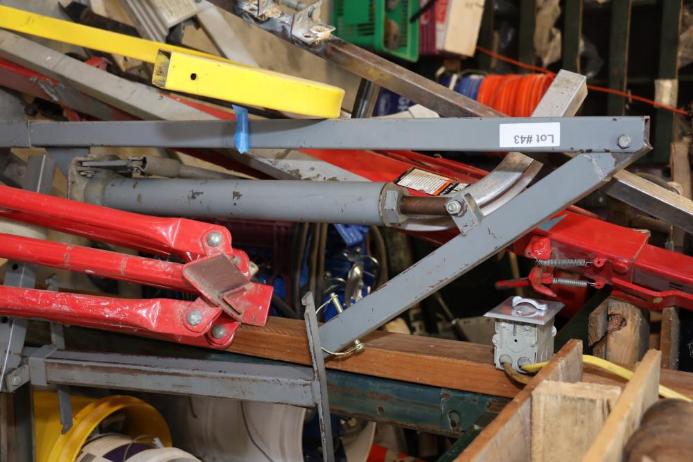 Items include 2006 Cam Superline dump trailer; 1992 Haulmark enclosed trailer; Central machinery model 2146 vertical wood cutting band saw; Rim-a-slitter model 24b gutter trimmer; Husqvarna K 970 wet/dry concrete saw; Stihl MS 291 chain saw; DeWalt 18V cordless rotary laser; Bostich pneumatic nailers; Reddyheater 65-85-100,000 btu propane heater; roofing tools; Vanguard metal scaffolding; Boss 9'2" Power-V XT snow plow; Bella wood flooring; Qual-Craft pump jack system; rough hewn lumber; metal studs/molding; concrete blankets & more. Items are located in Highland, NY.