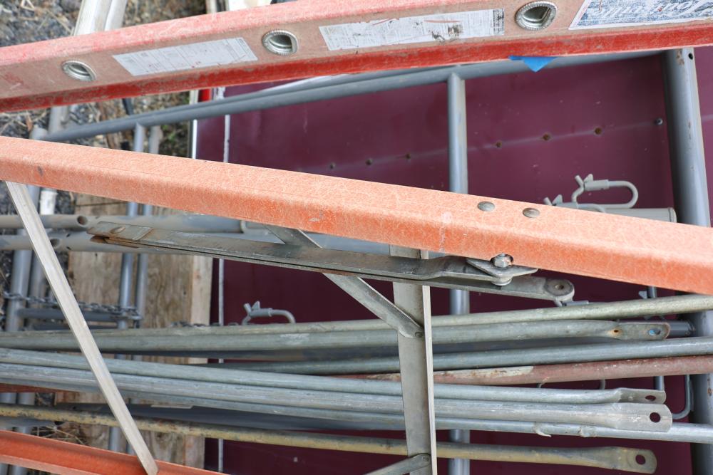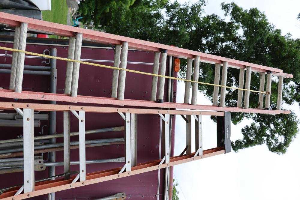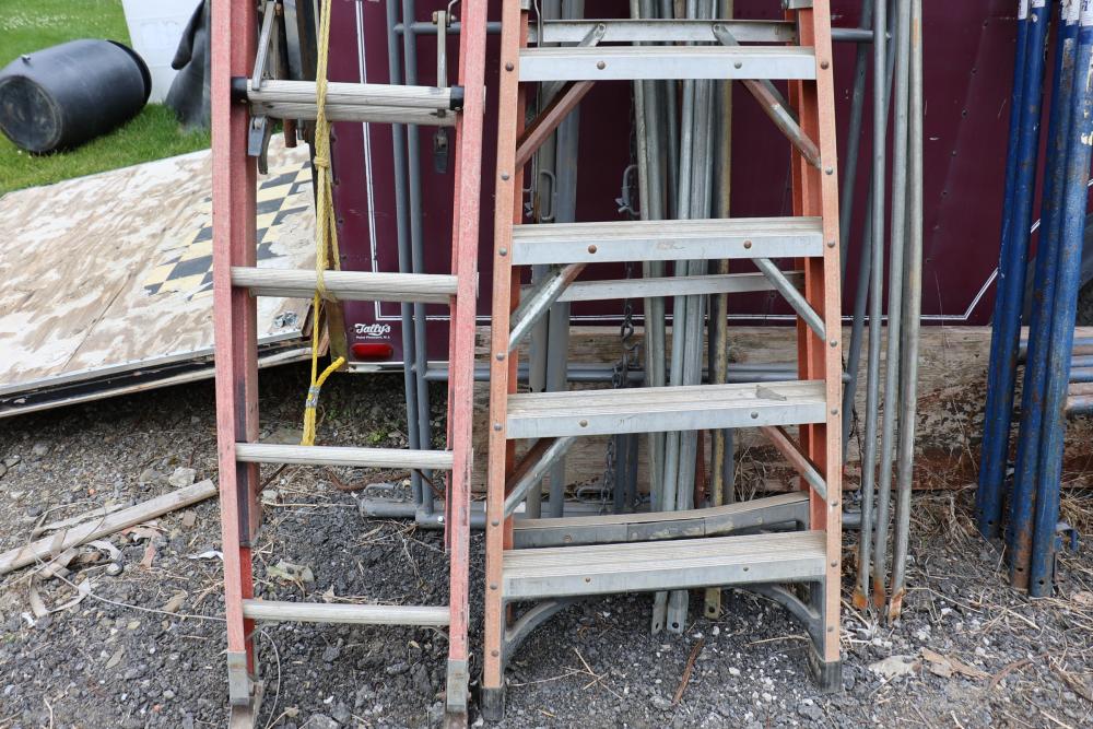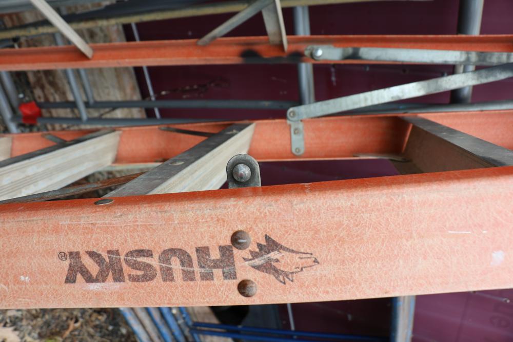 Husky A-frame ladder 10' ladder (see photos of support) and Louisville 12' extension ladder.