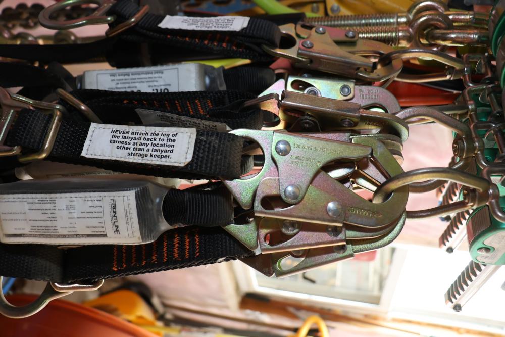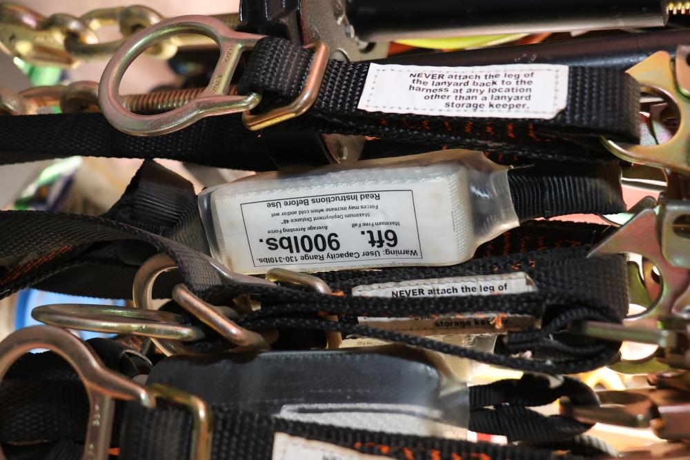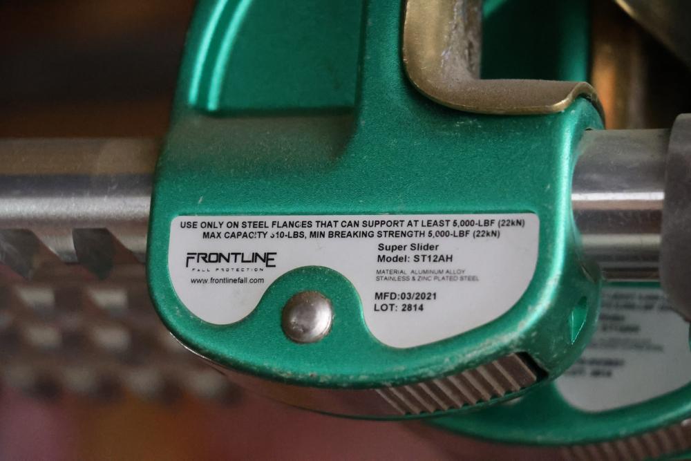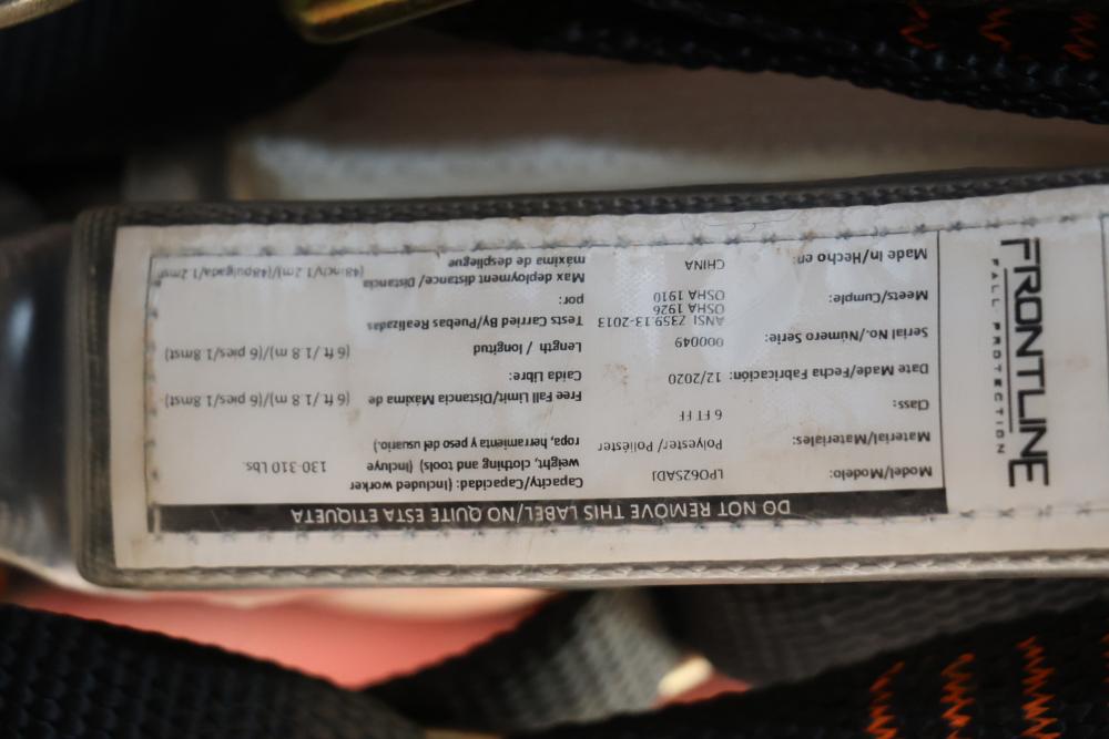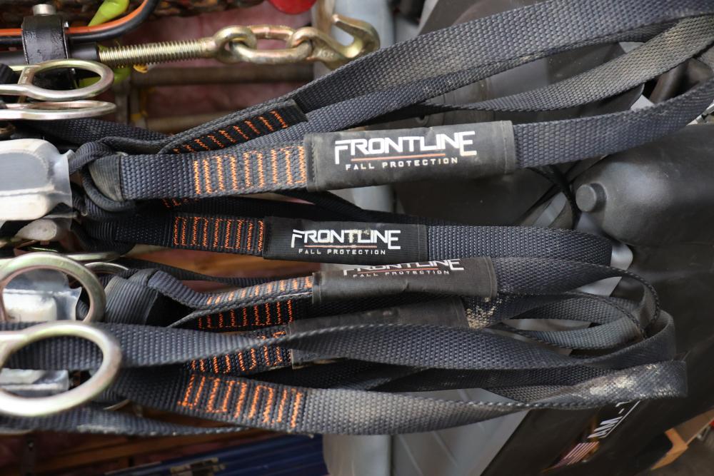 Set of four Frontline Super Sliders model ST12AH each with a Frontline Fall Protection model LP062SADJ polyester 6 FT class harness with a 130-310lb capacity.
