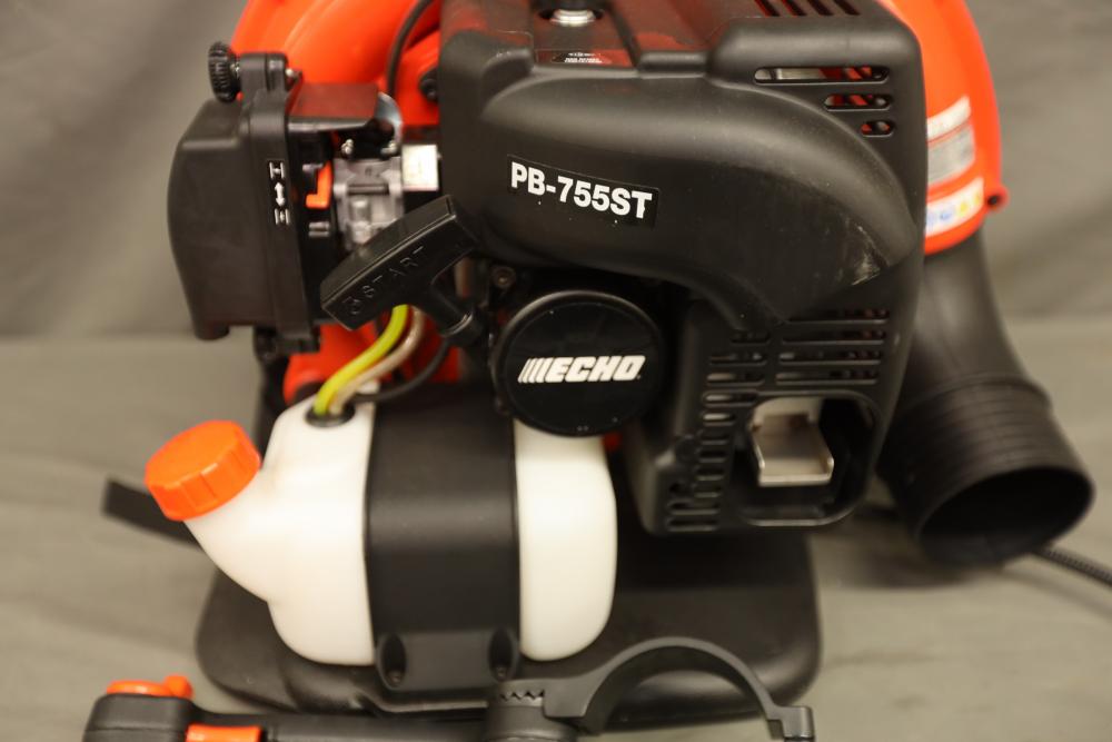 Echo PB-755ST back-pack leaf blower with tube mounted throttle and 63.3cc 2-stroke engine. Runs and operates.