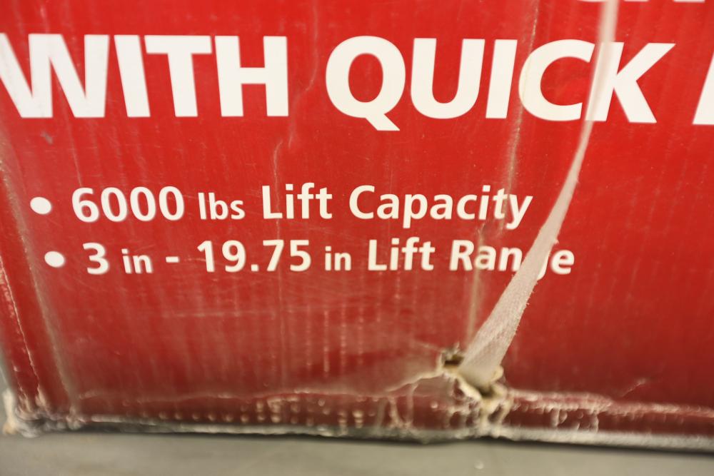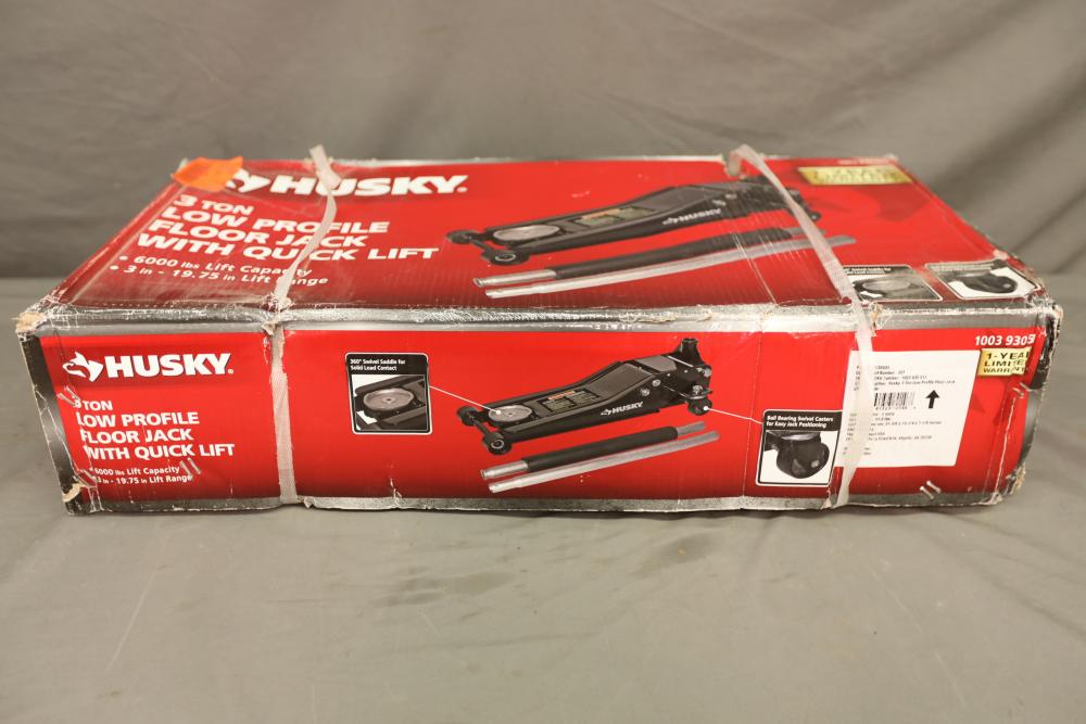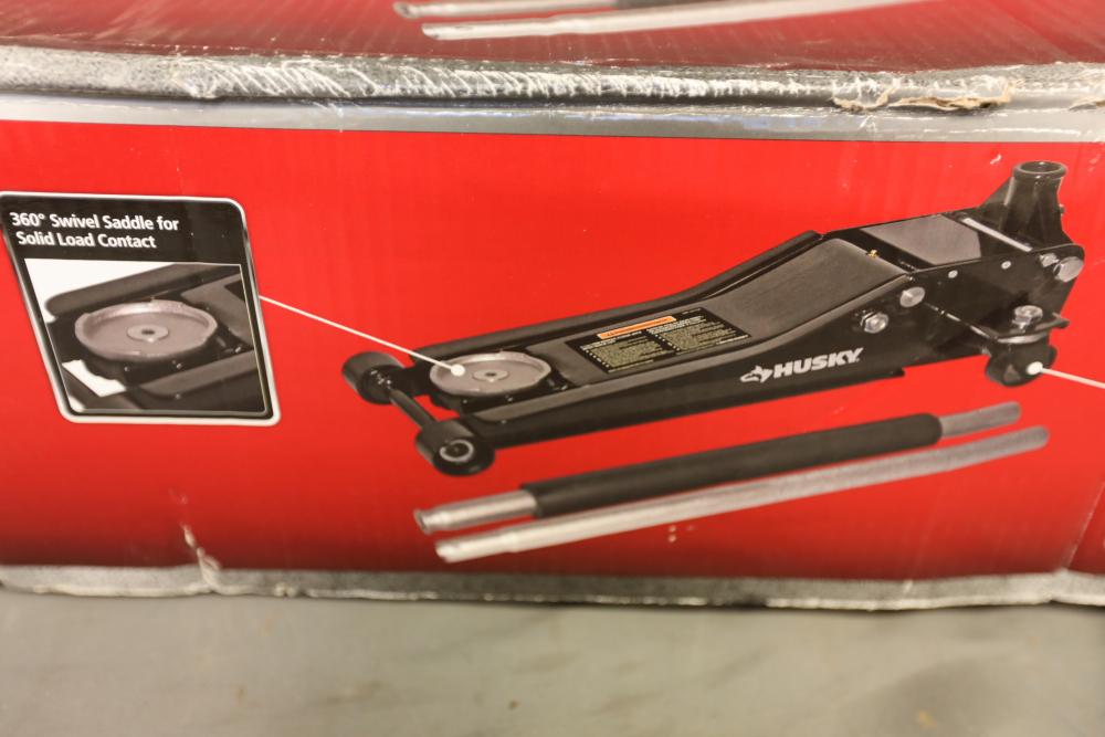 Husky 3-ton low profile floor jack with quick lift, 6000 lbs. capacity model HD00120.