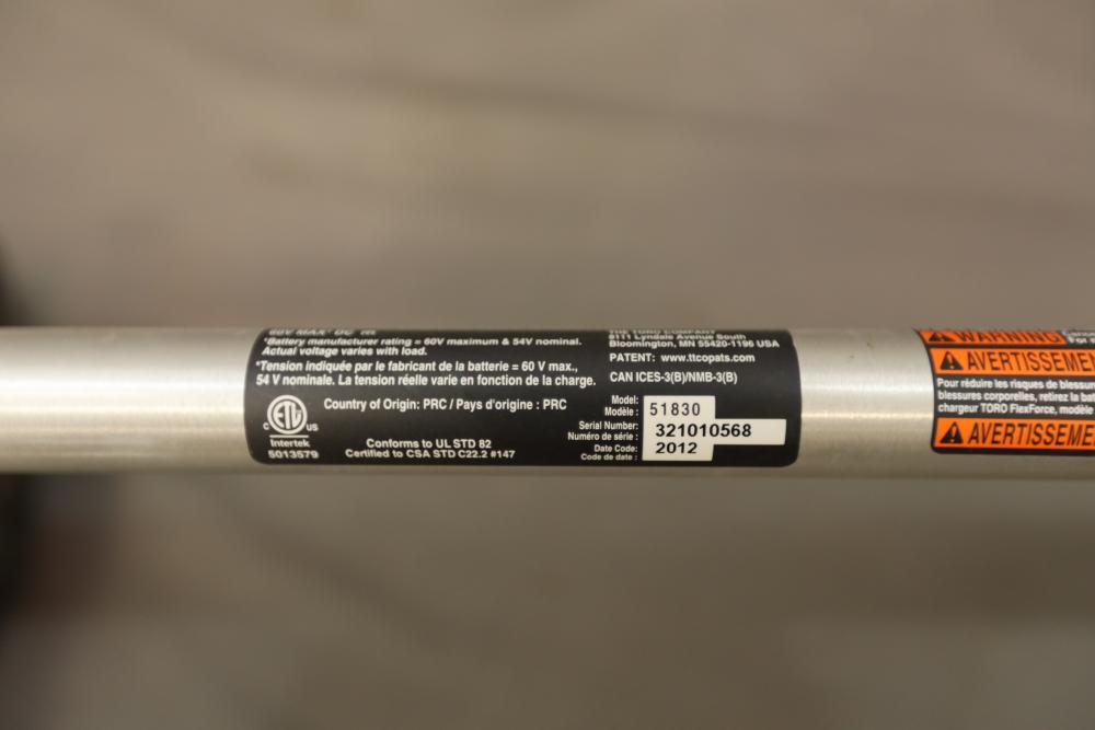 Toro 60V Max 14"-16" brushless string trimmer model 51830 includes battery but no charger. Runs and operates.
