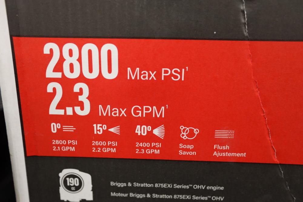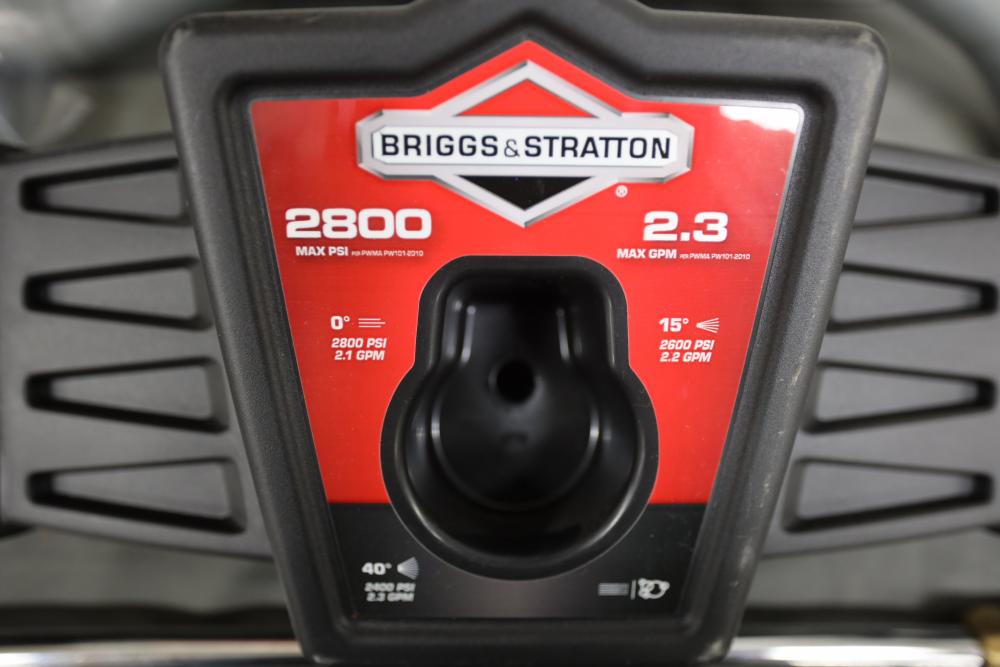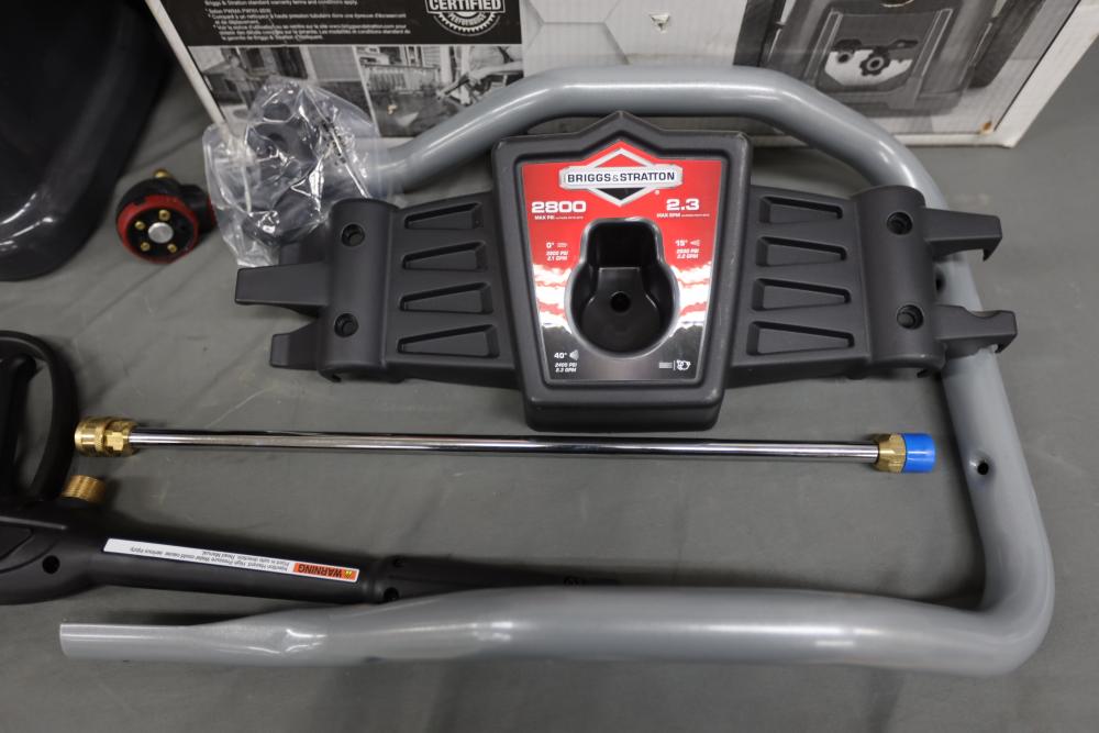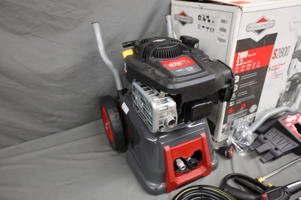 Briggs and Stratton S2800 pressure washer model 020662-01 with 875 Exi 190cc engine and attachments. Runs and operates.