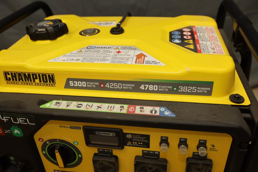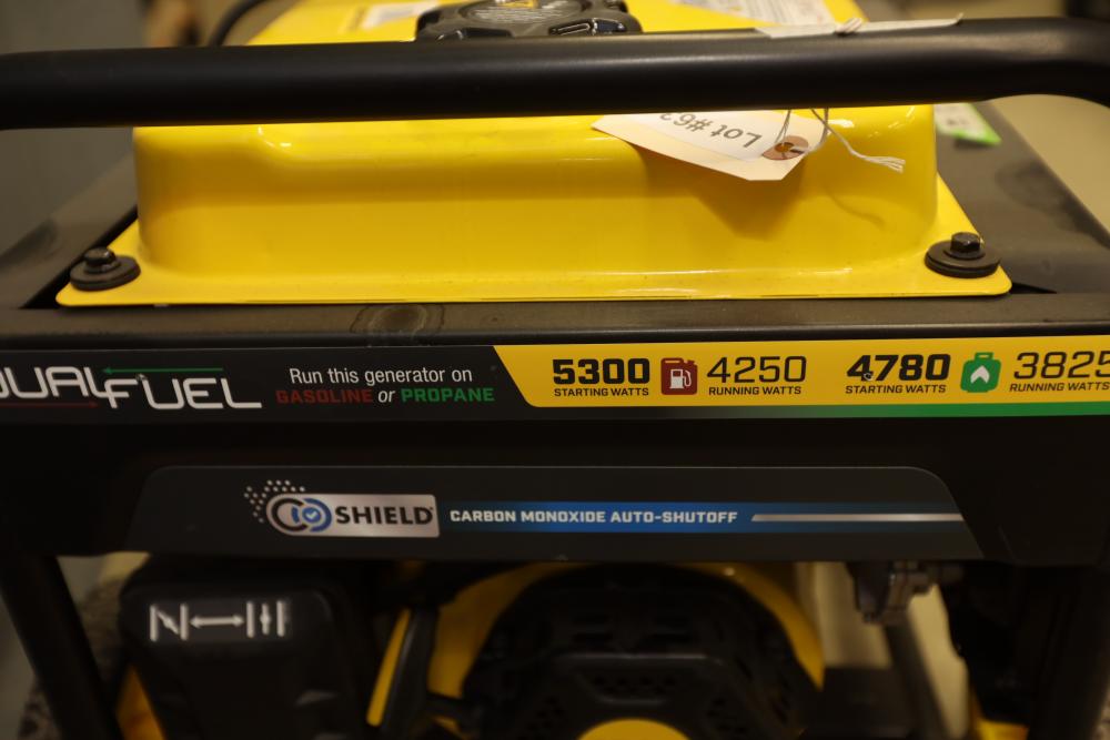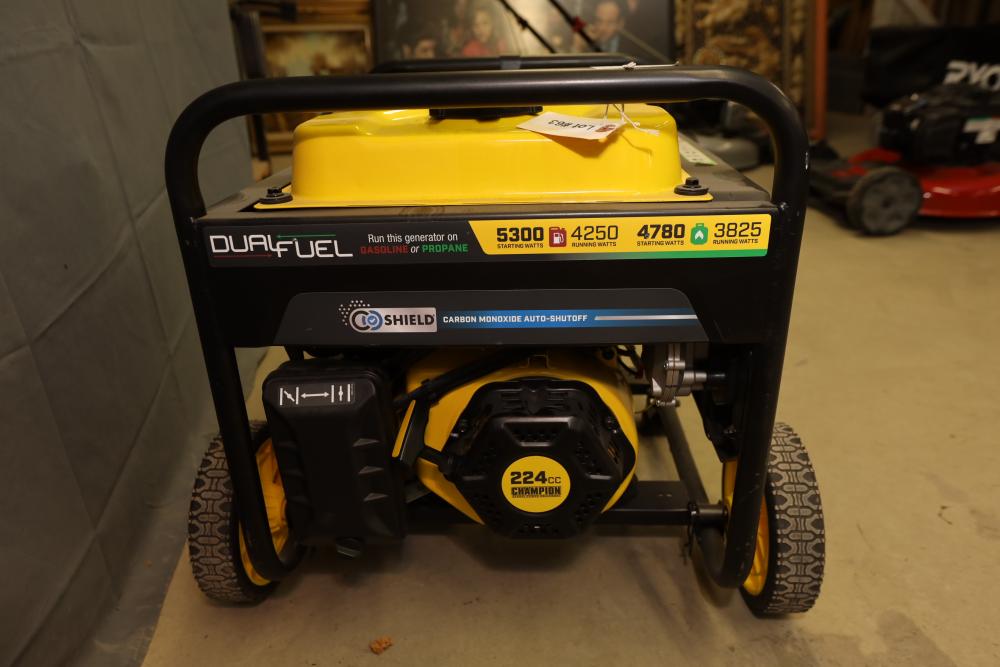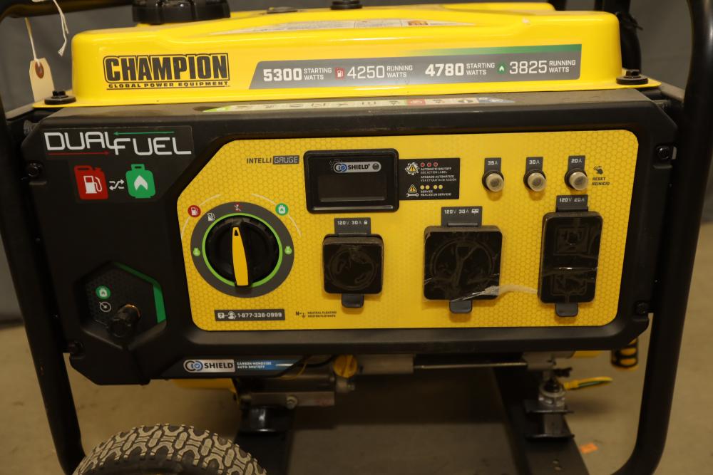 Champion Dual Fuel portable generator model 201279 with 5300 starting watts, 224cc engine, carbon monoxide auto-shutoff. Runs and operates.