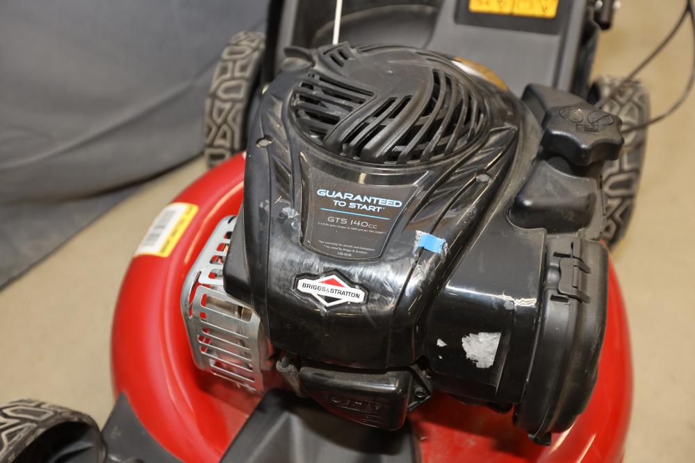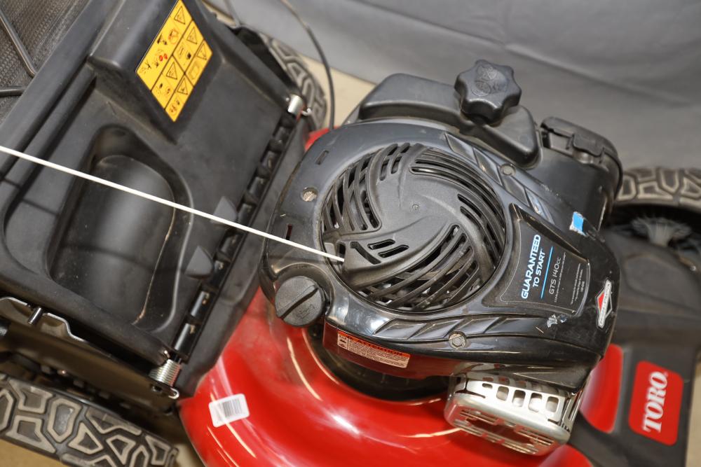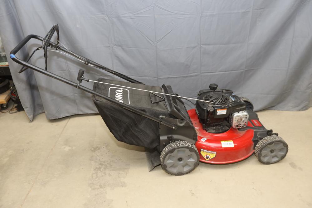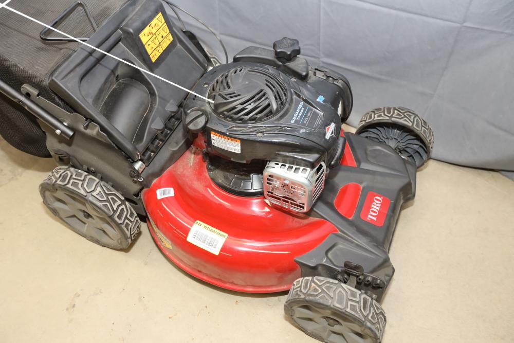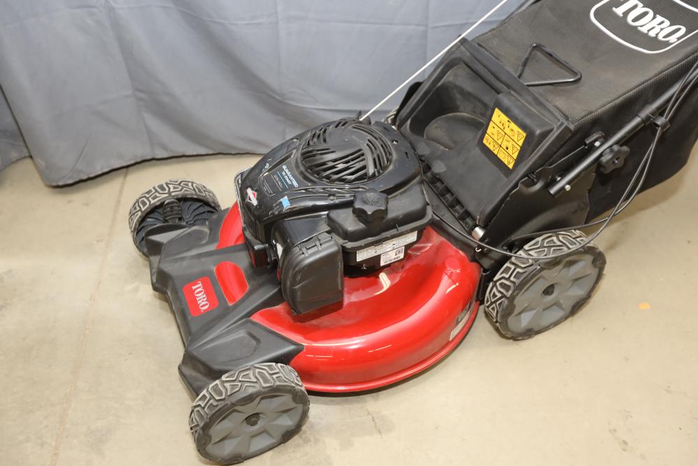 Toro Recycler walk-behind self-propel mower model 21321 with Briggs and Stratton GTS 140cc engine and bag attachment. Runs and operates.