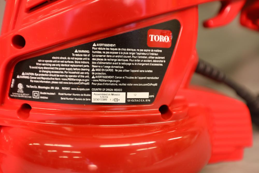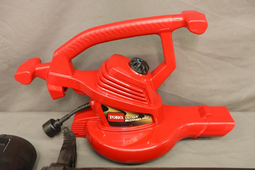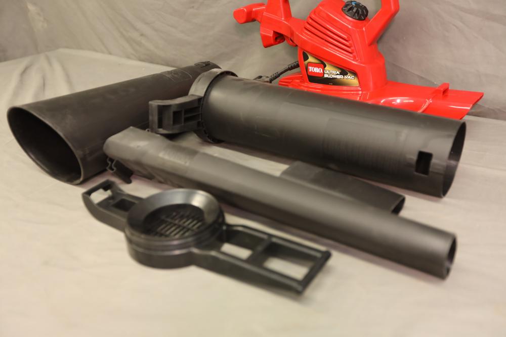 Toro electric ultra-blower 3 in 1 vac model 51619, high speed vacuum, leaf shredder, and blower with attachments. Does not operate.