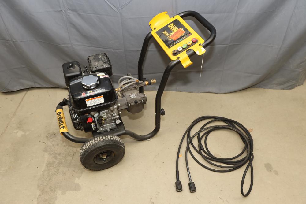 DeWalt 3600 psi. 2.5GPM gas cold water profession pressure washer model DXPW61299 with Honda GX200 engine. Runs and has attachment nozzles/hose but no wand.